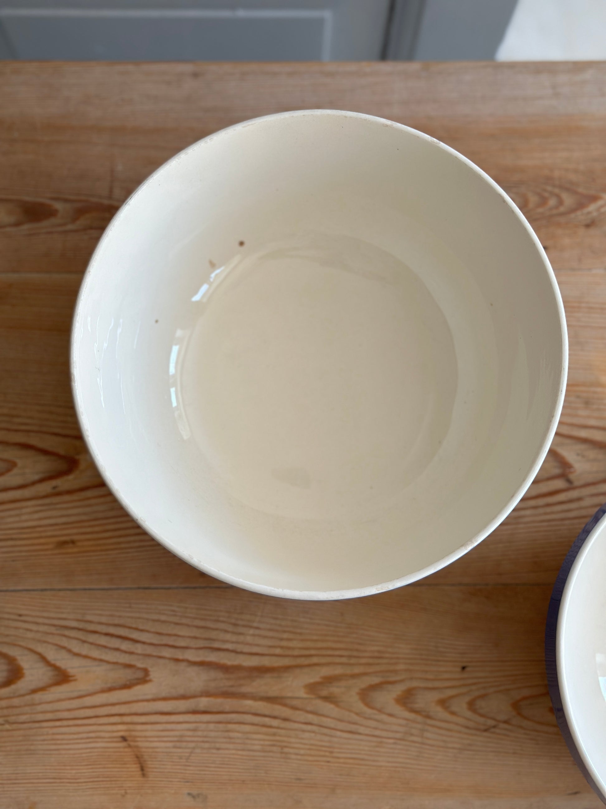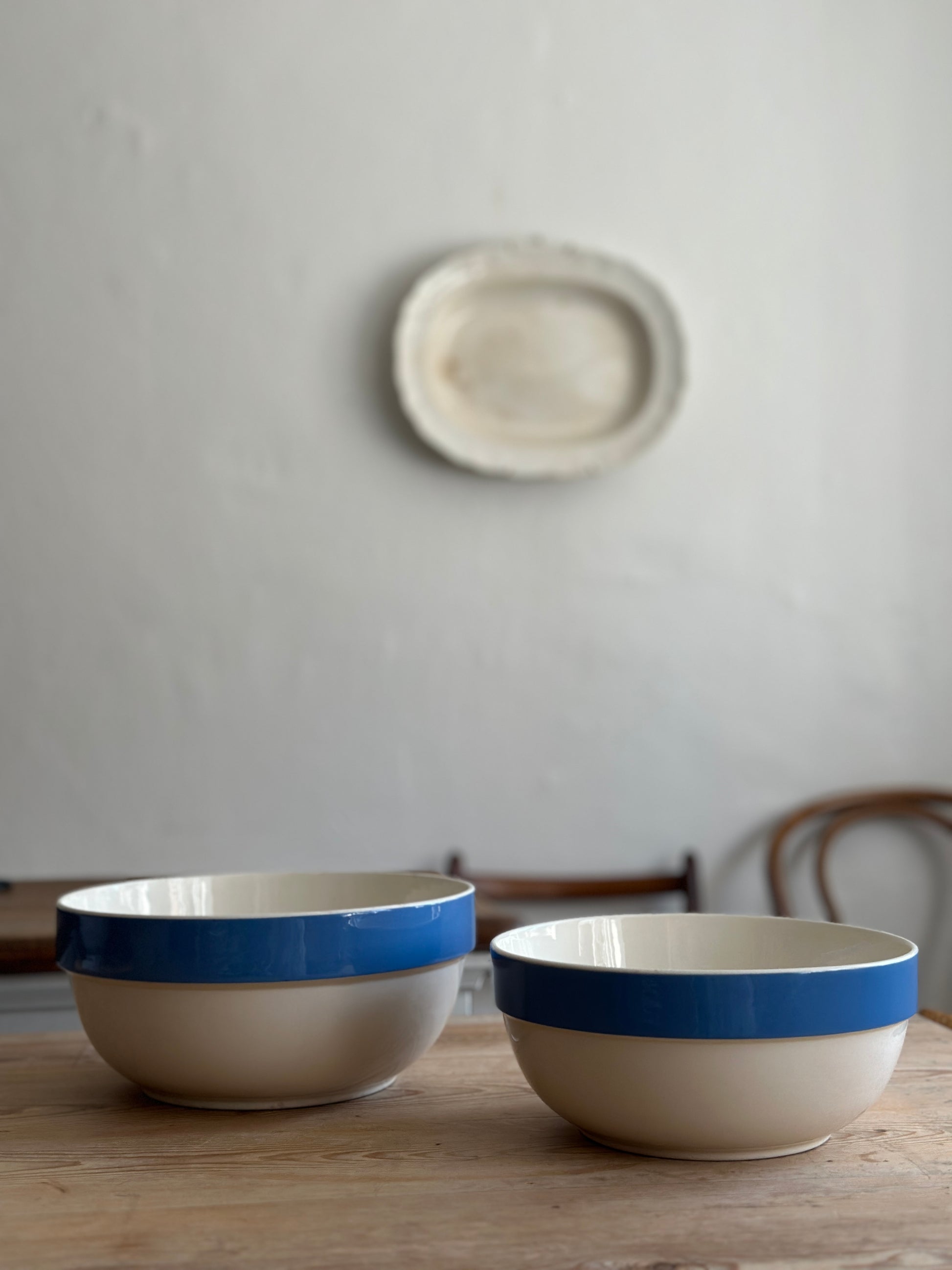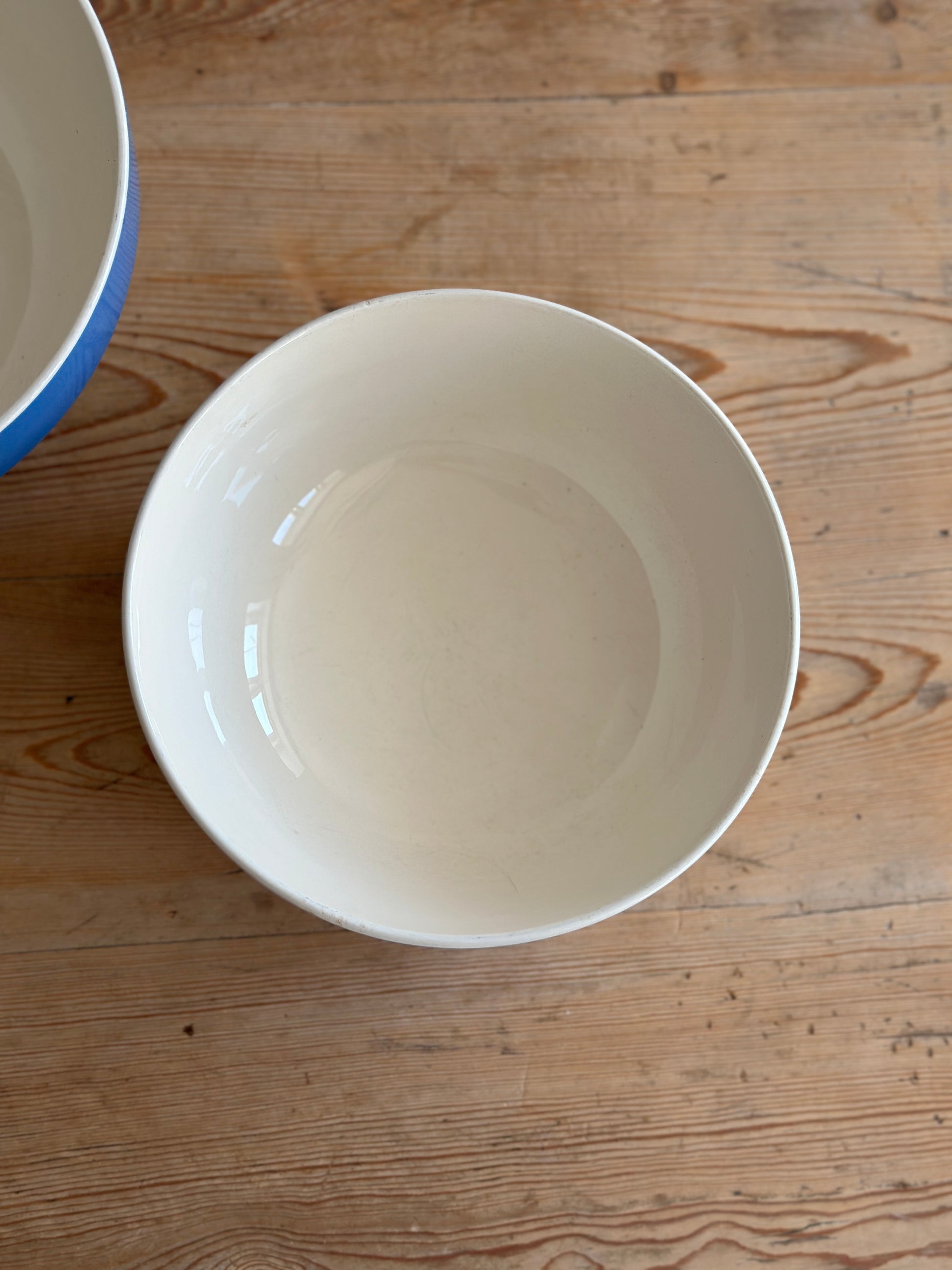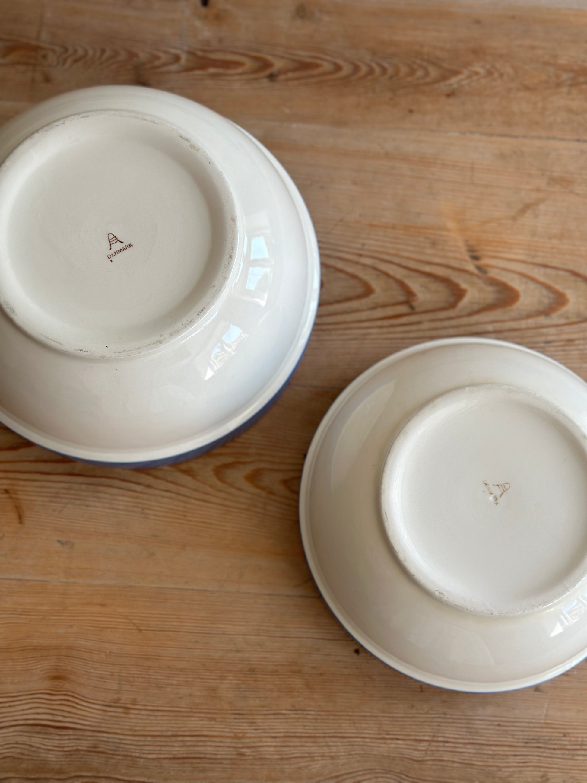 Cremefarvet skåle med blå kant fra danske Aluminia