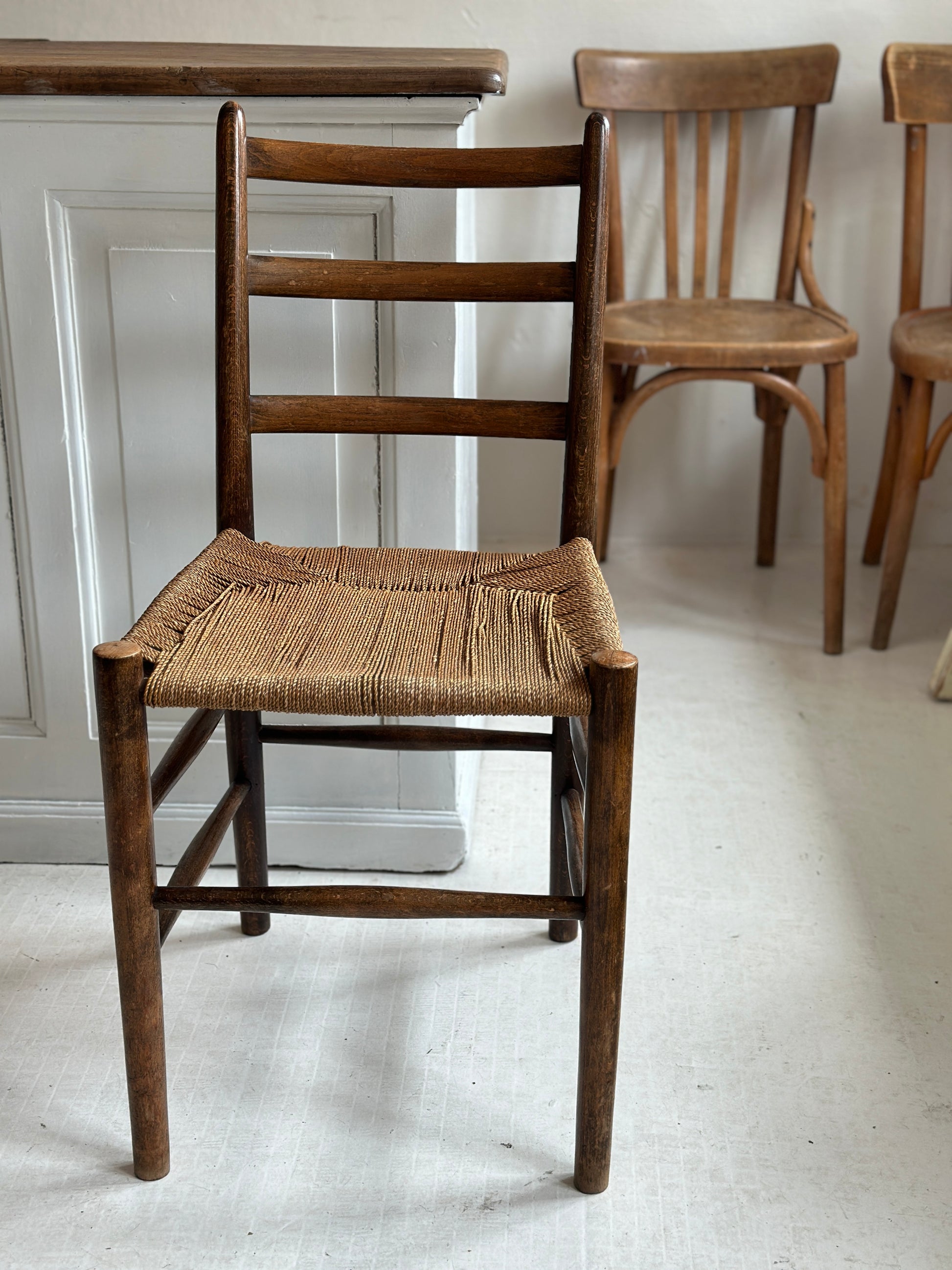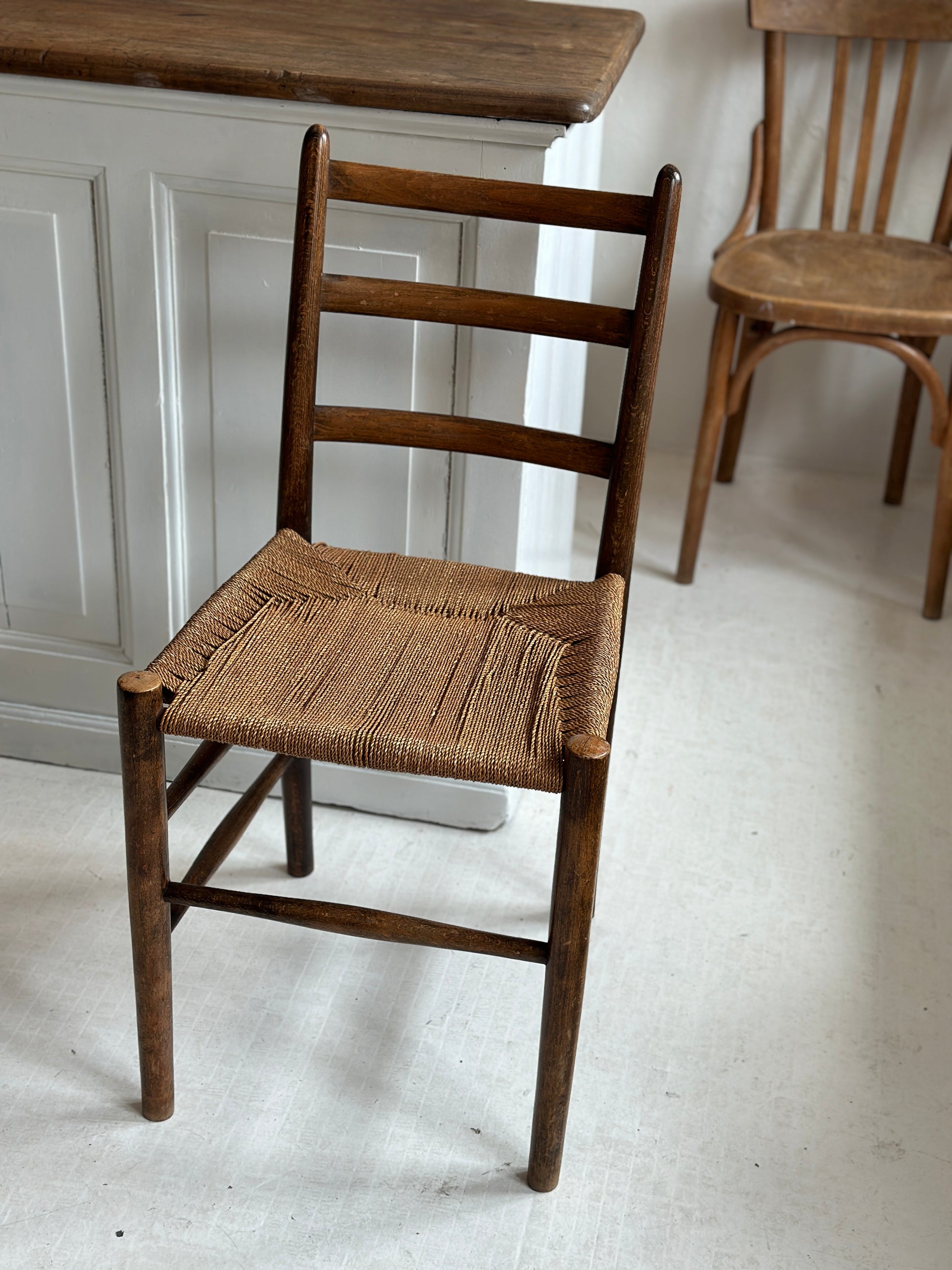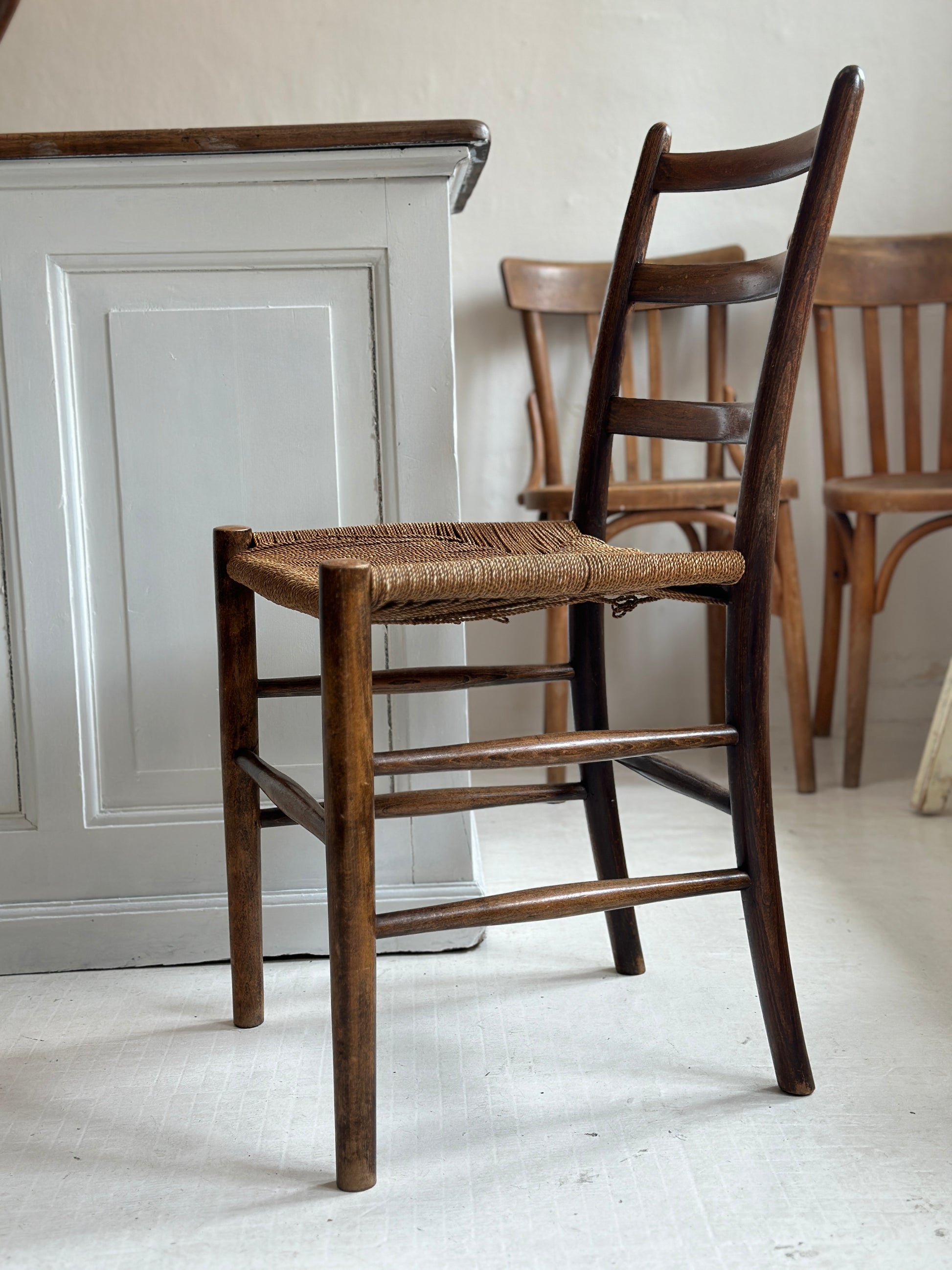Smuk gammel stol med flettet sæde