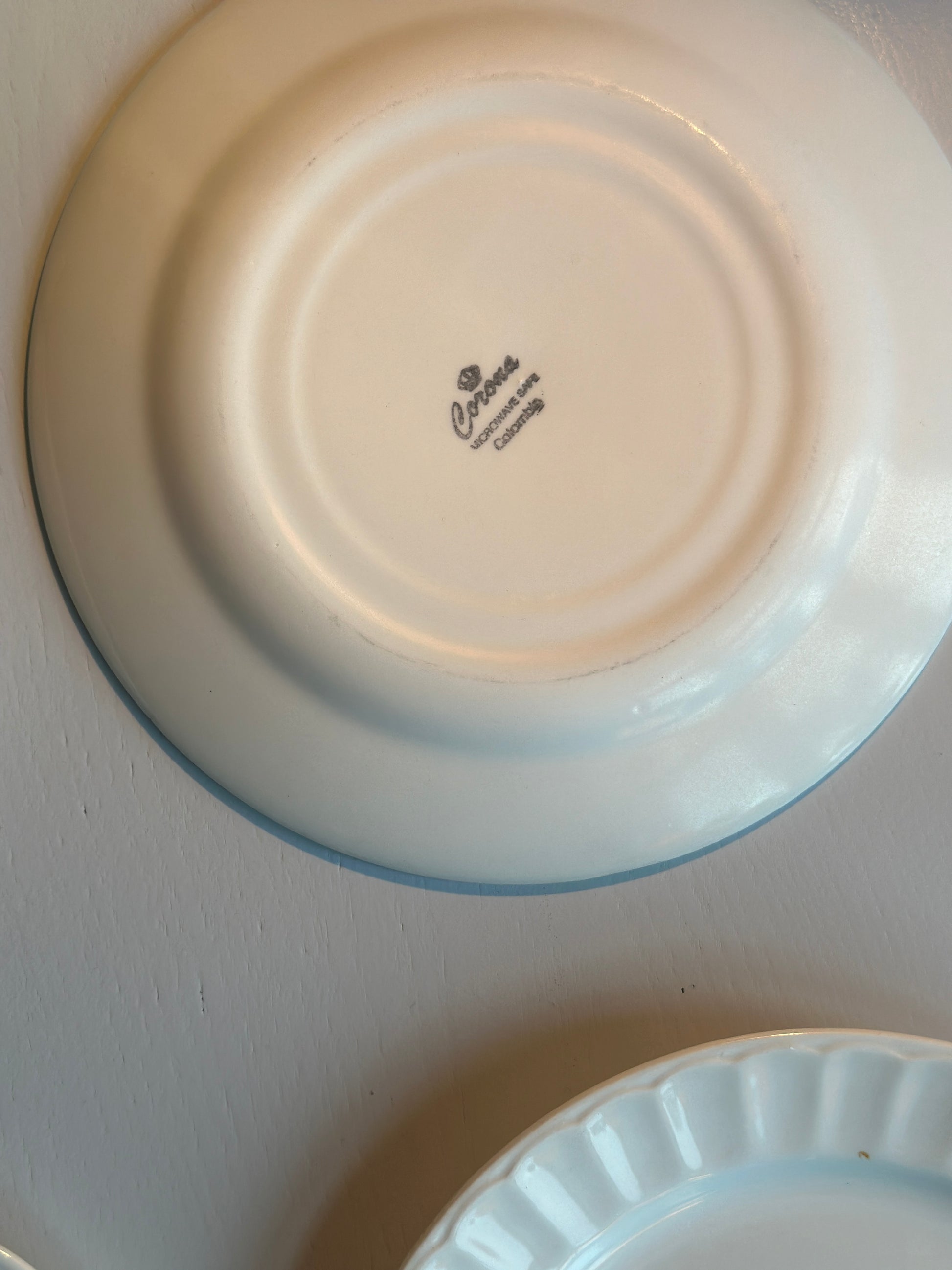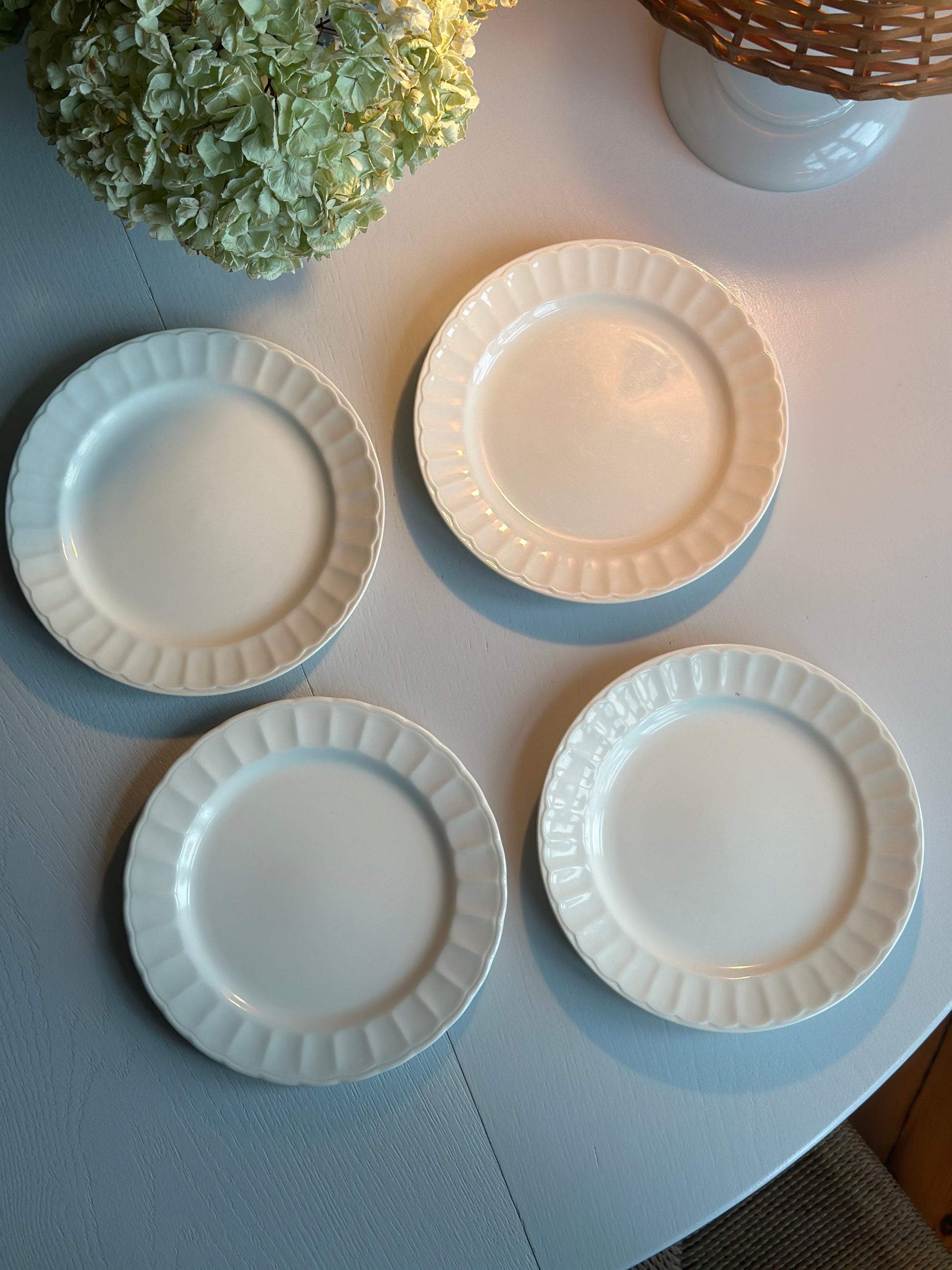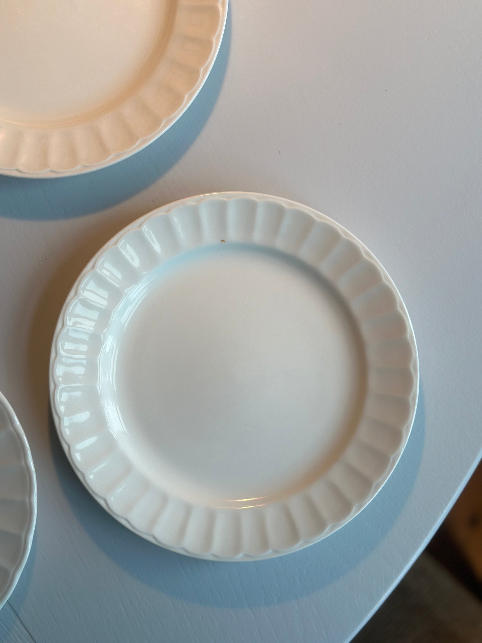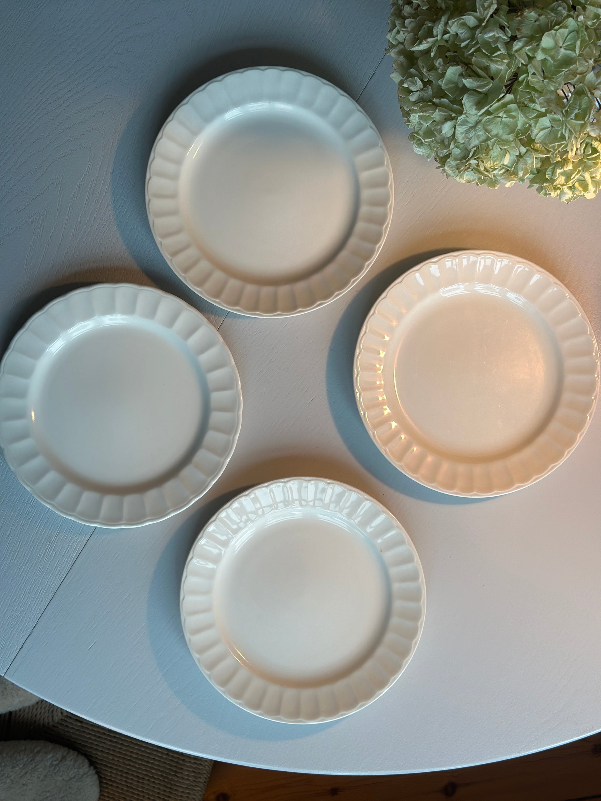 Smukke enkle frokosttallerkner i creme med bølget kant
