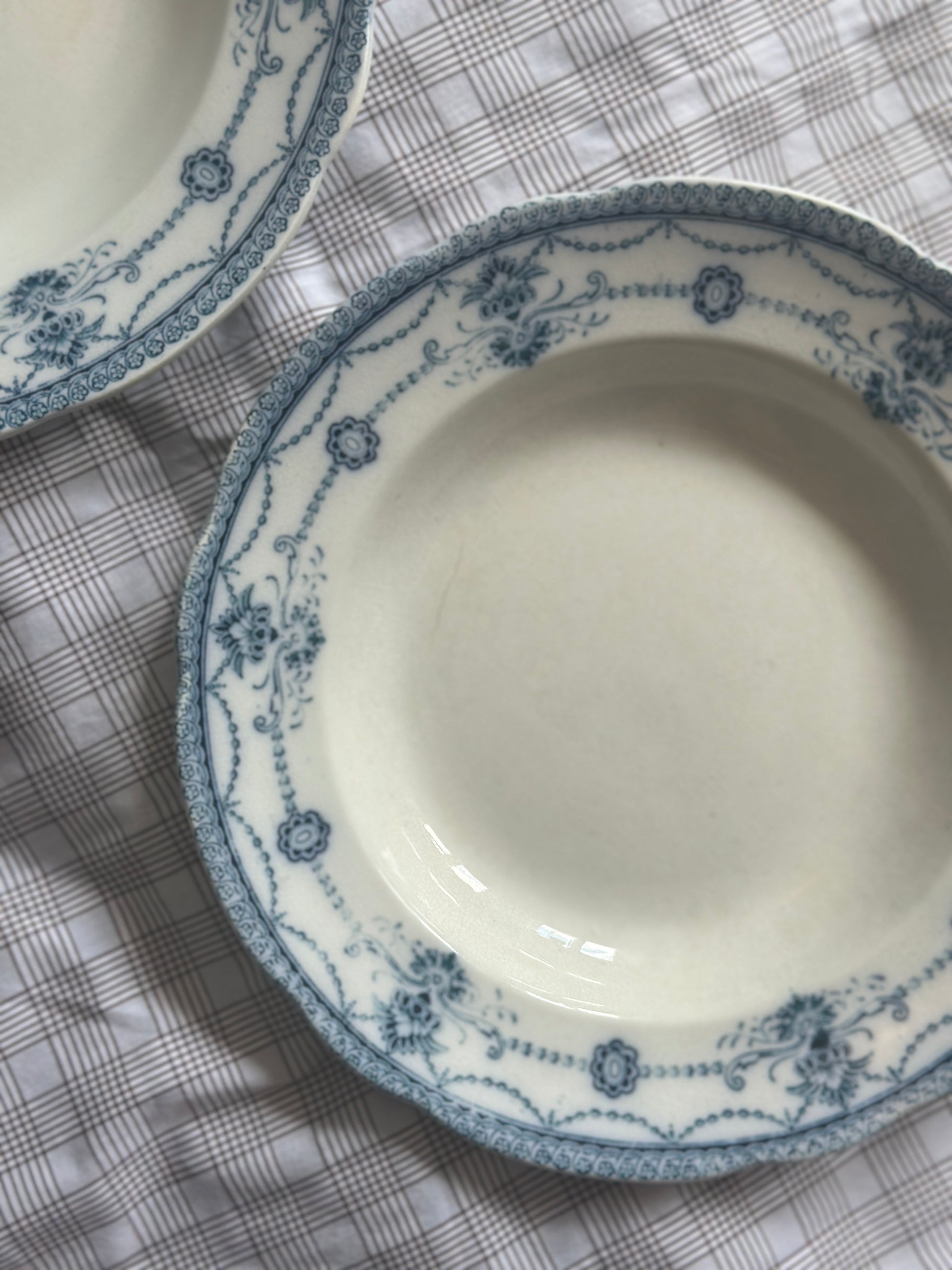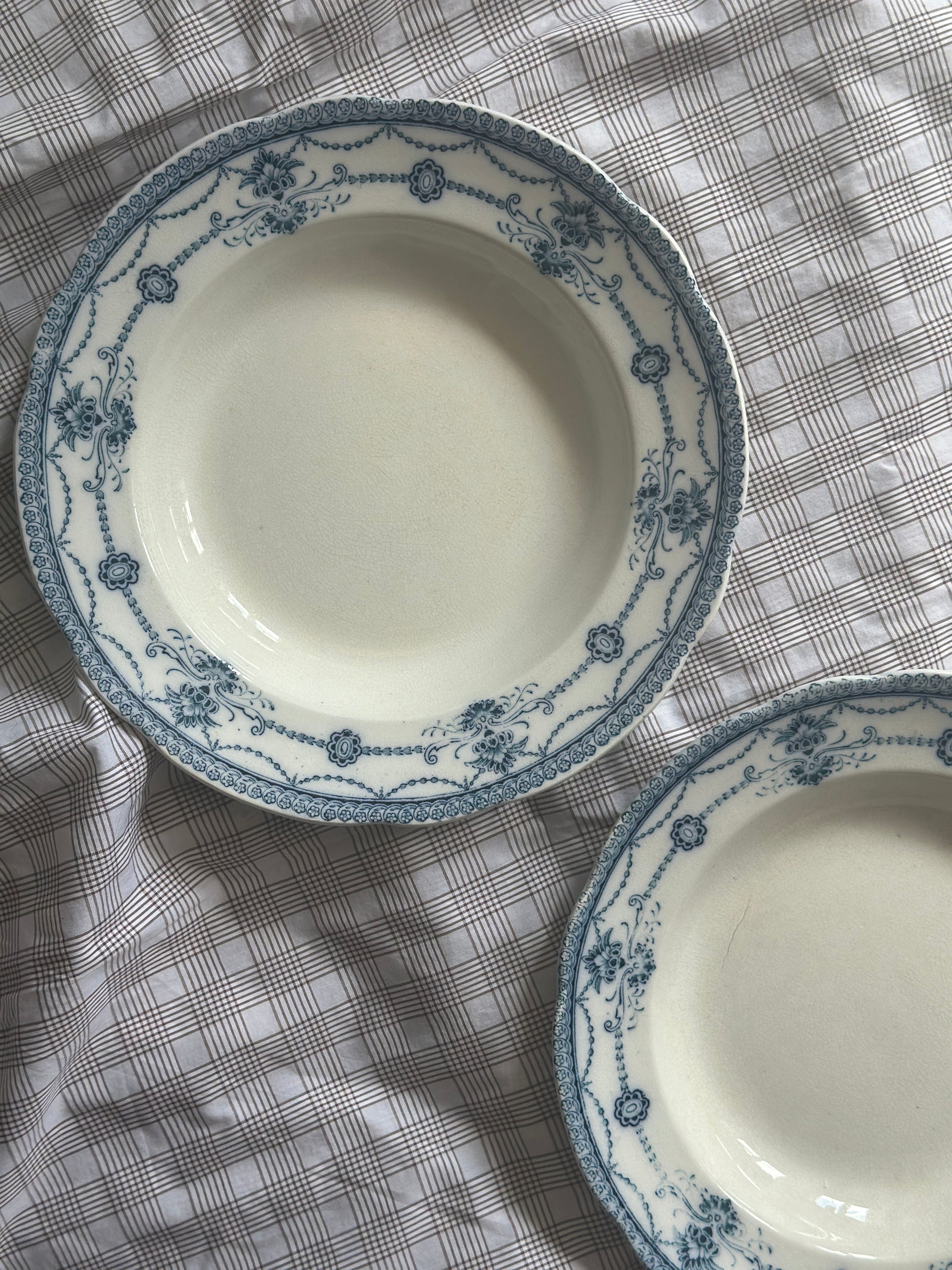 Smukke dybe Cæsar tallerkner fra Gustafsberg med blå motiv i kanten