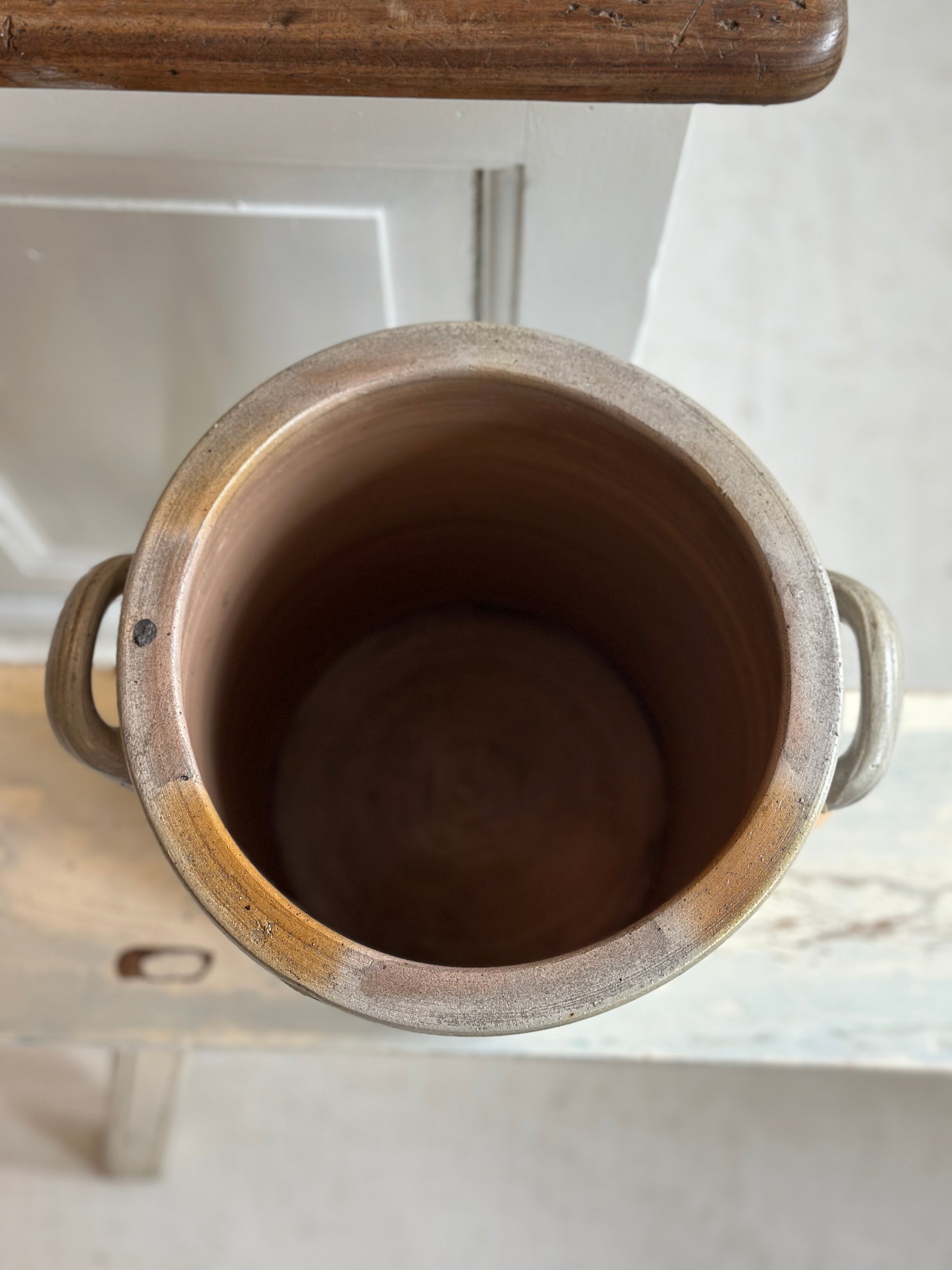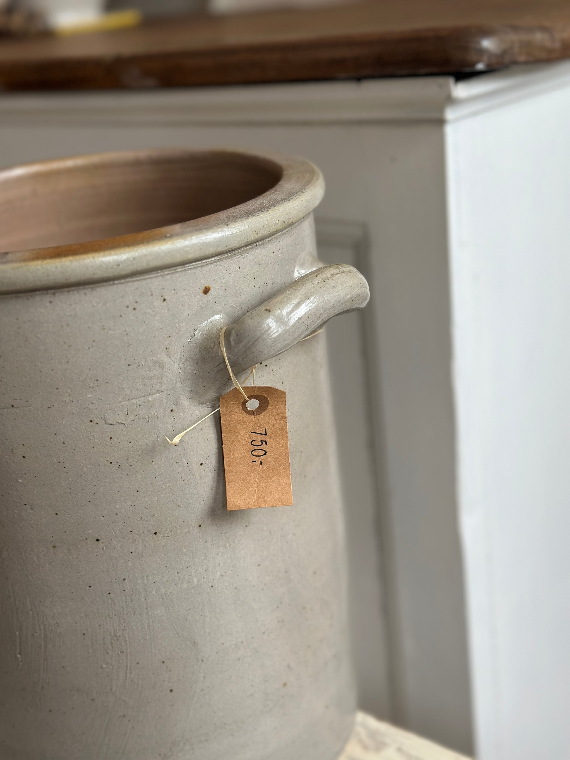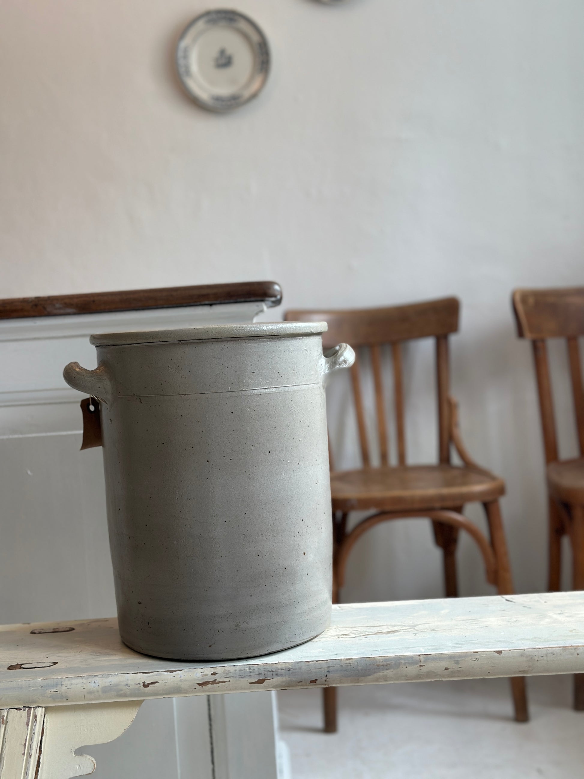 Smår smuk fransk krukke i grå med øre