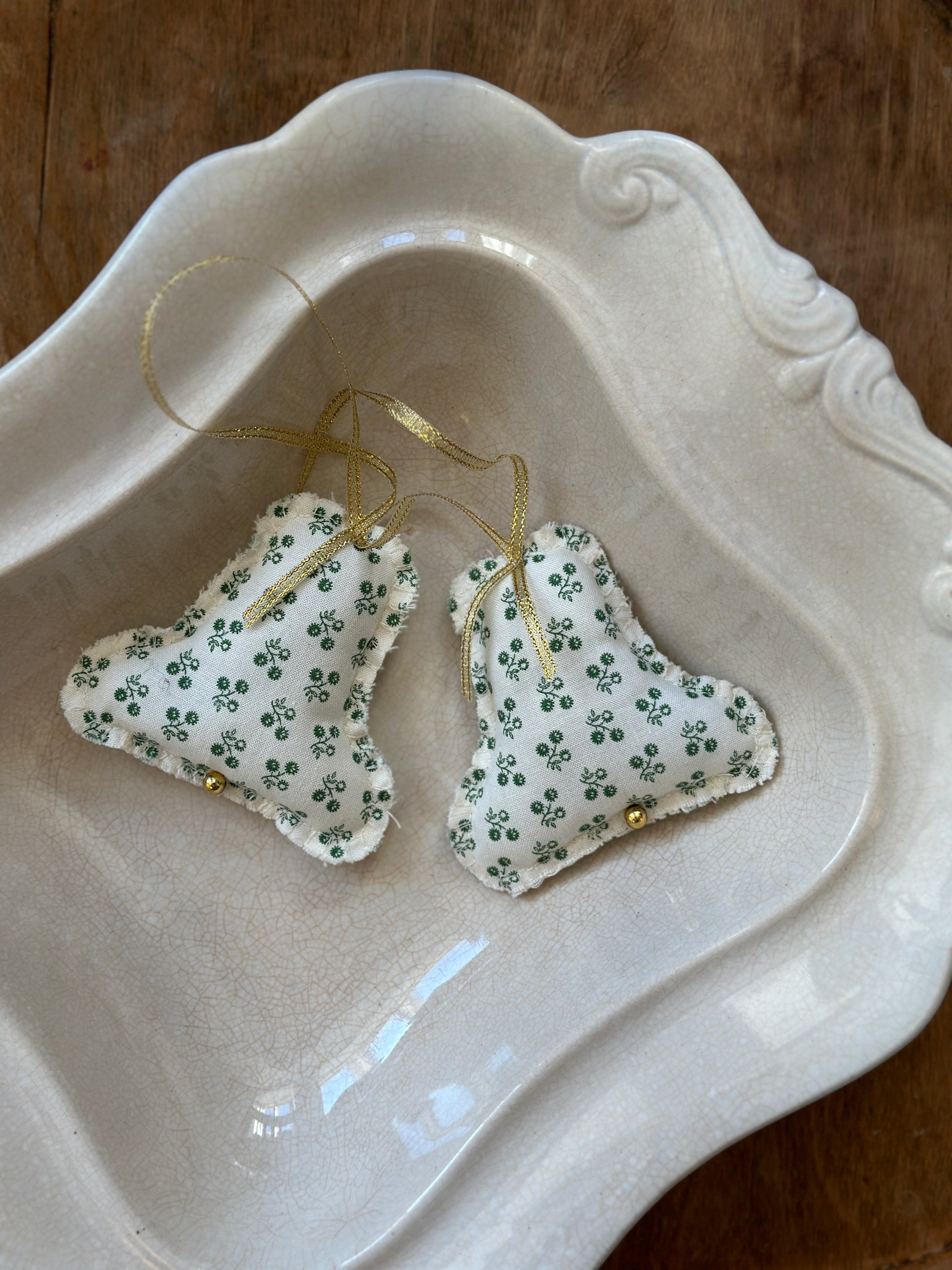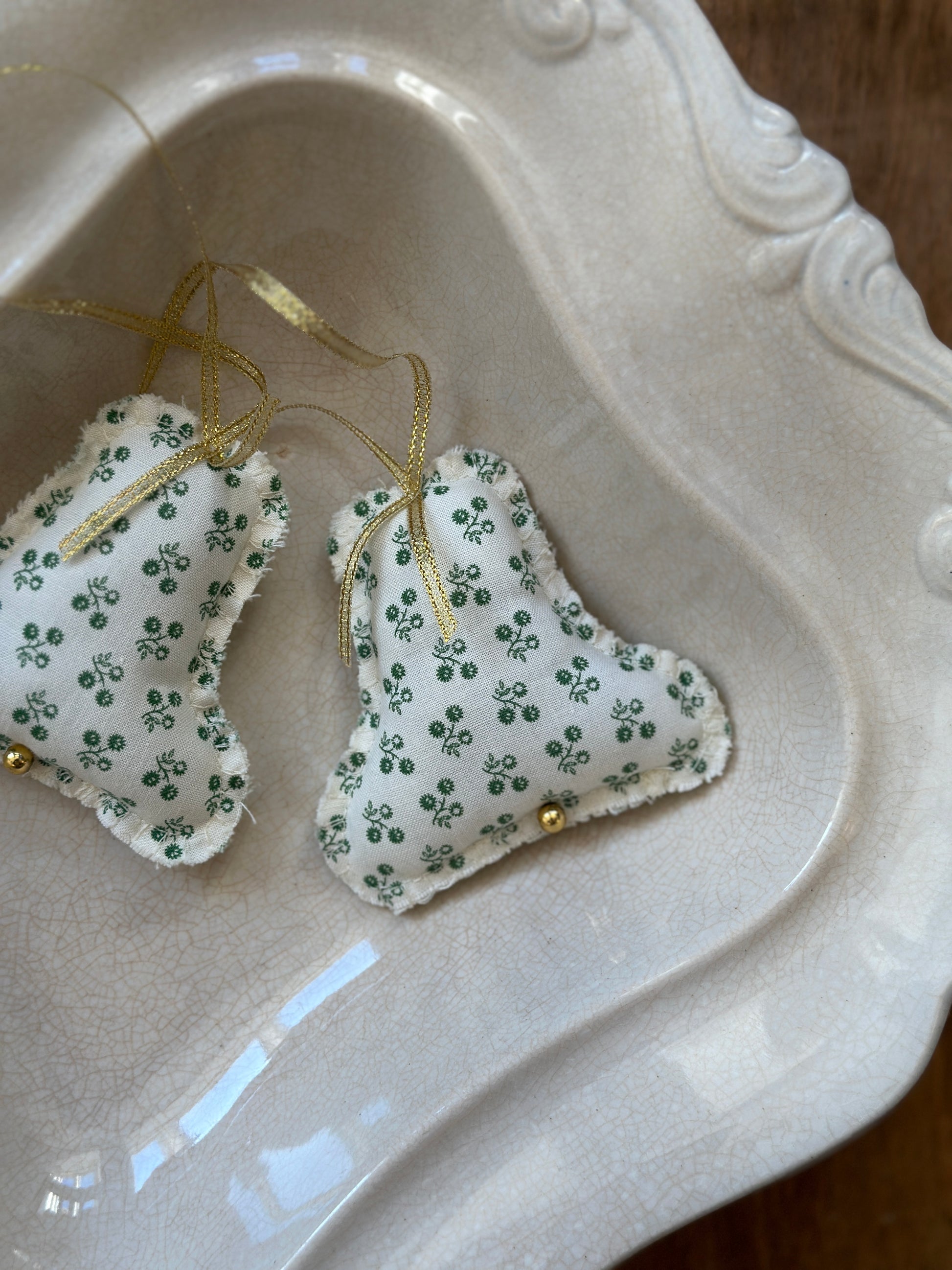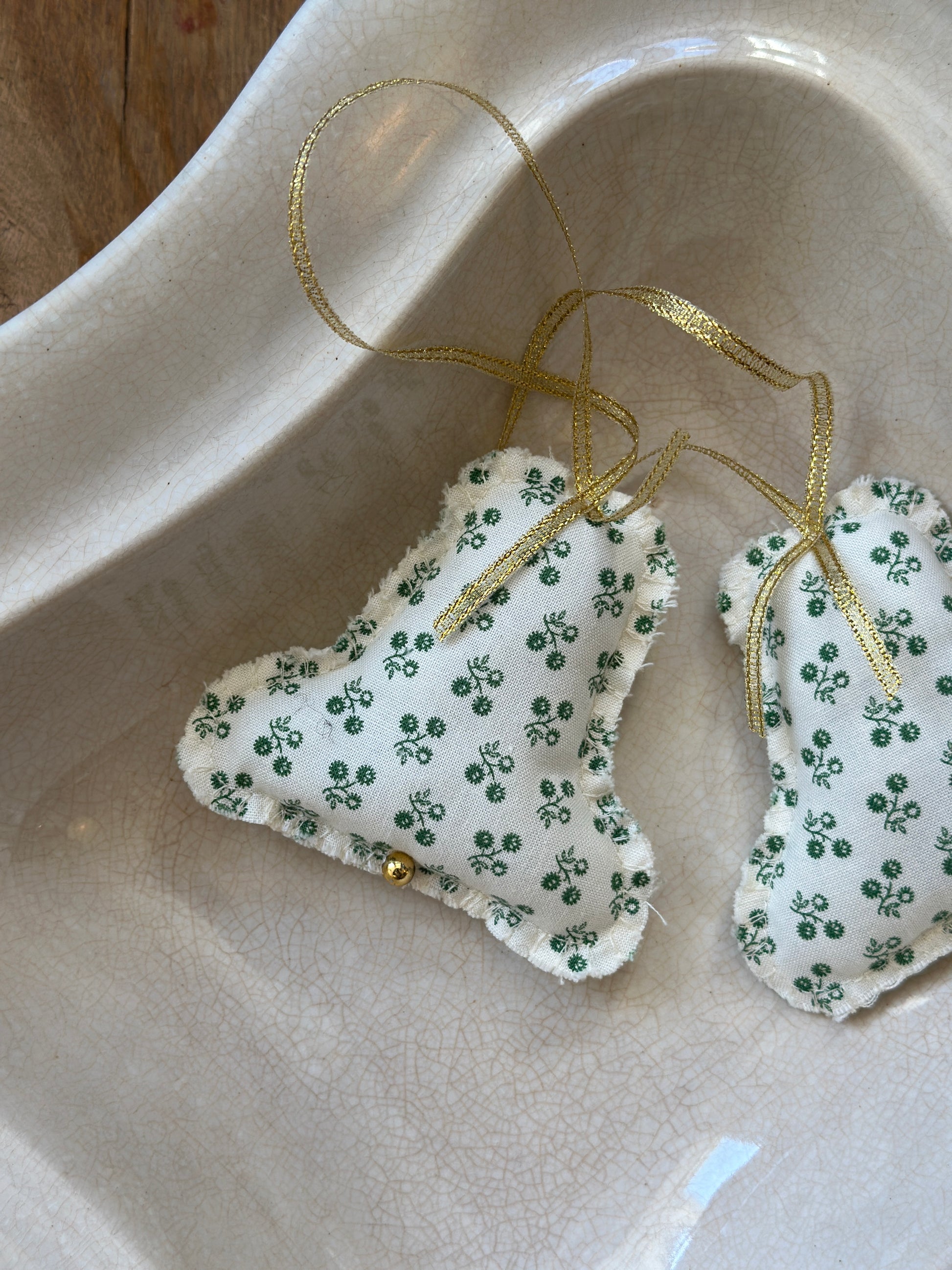 Fine håndsyet juleophæng fra danske Eline Engen. Produceret af deadstock materiale fra modeindustrien.