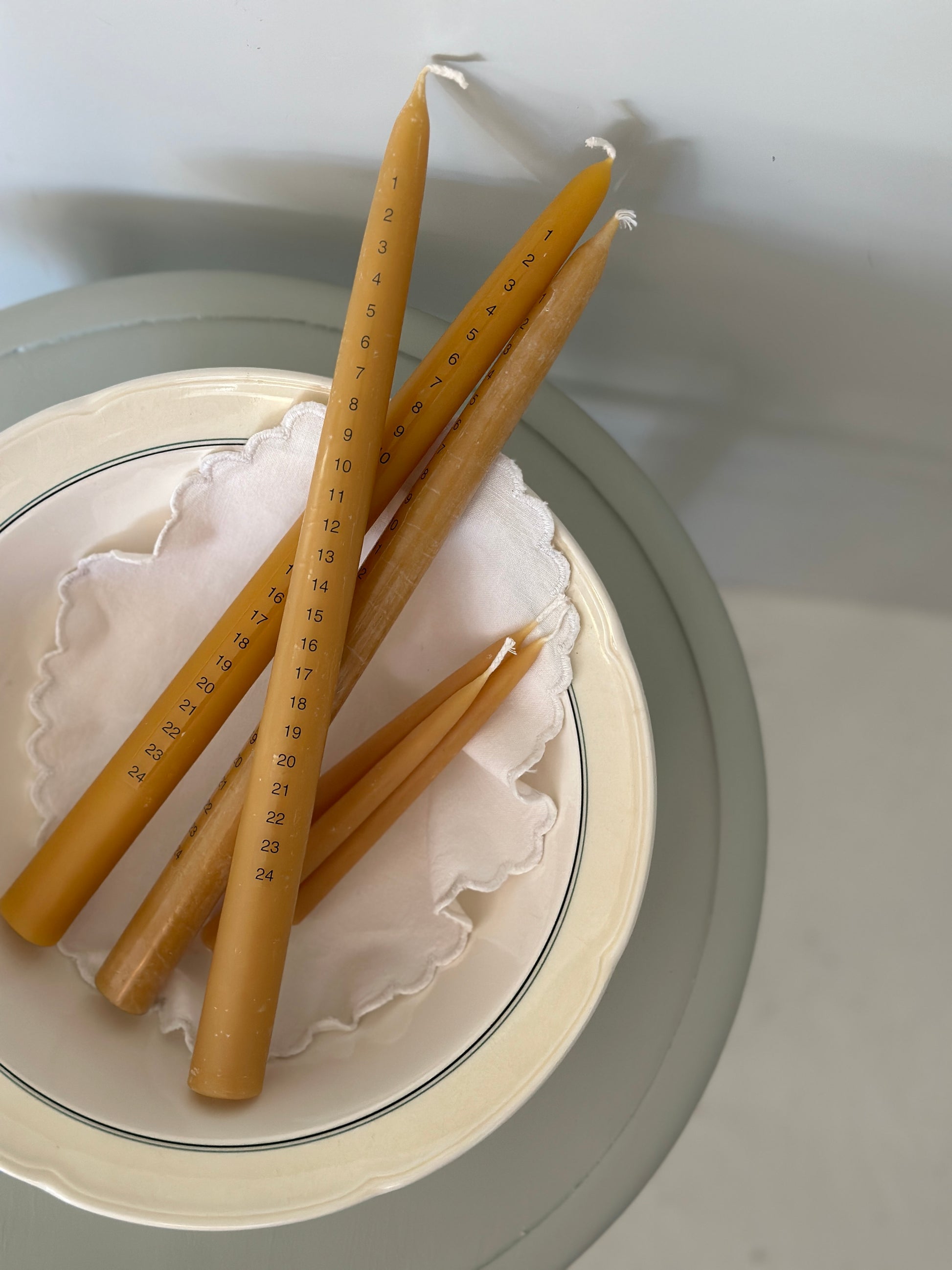 Hånddyppede kalenderlys fra Bistad i ren bivoks fra den grønne pulje