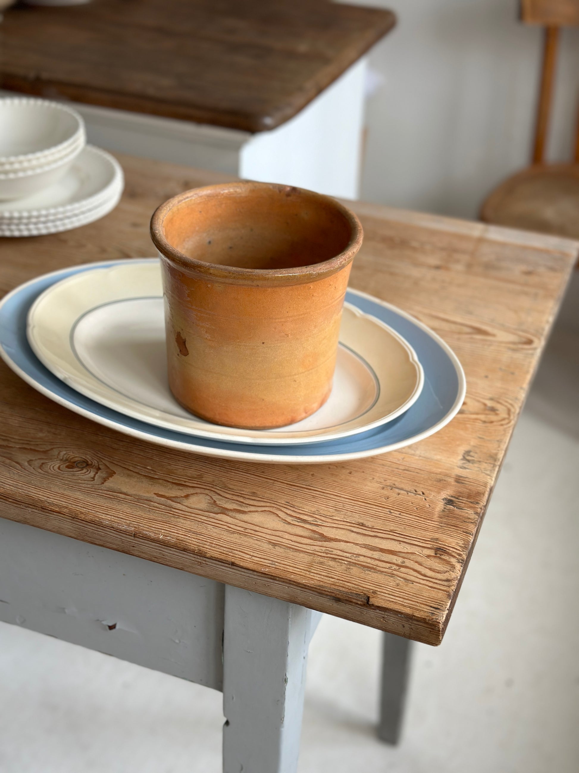 Smuk gammel lerkrukke med riller