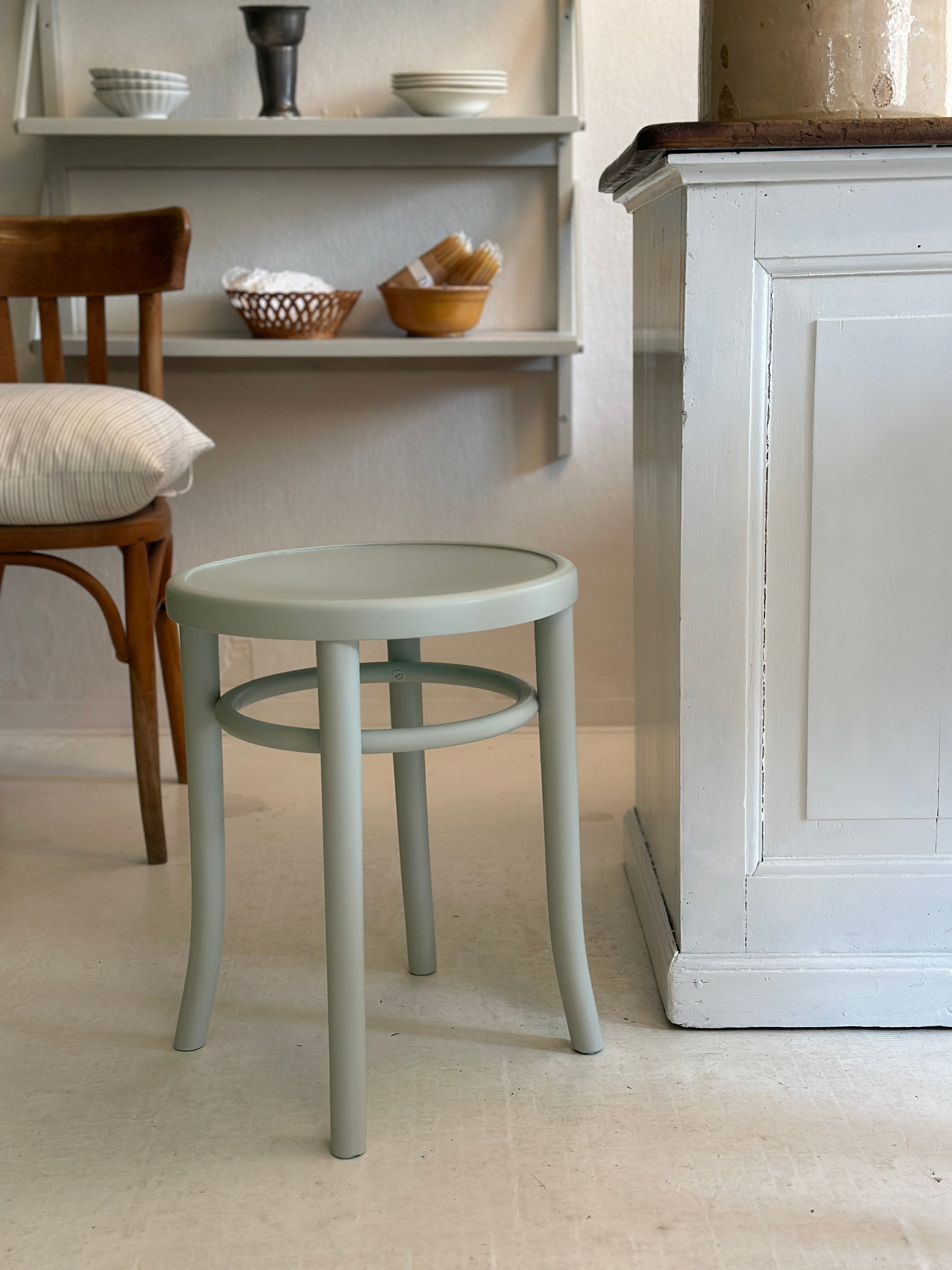 Fineste runde skammel i grå
