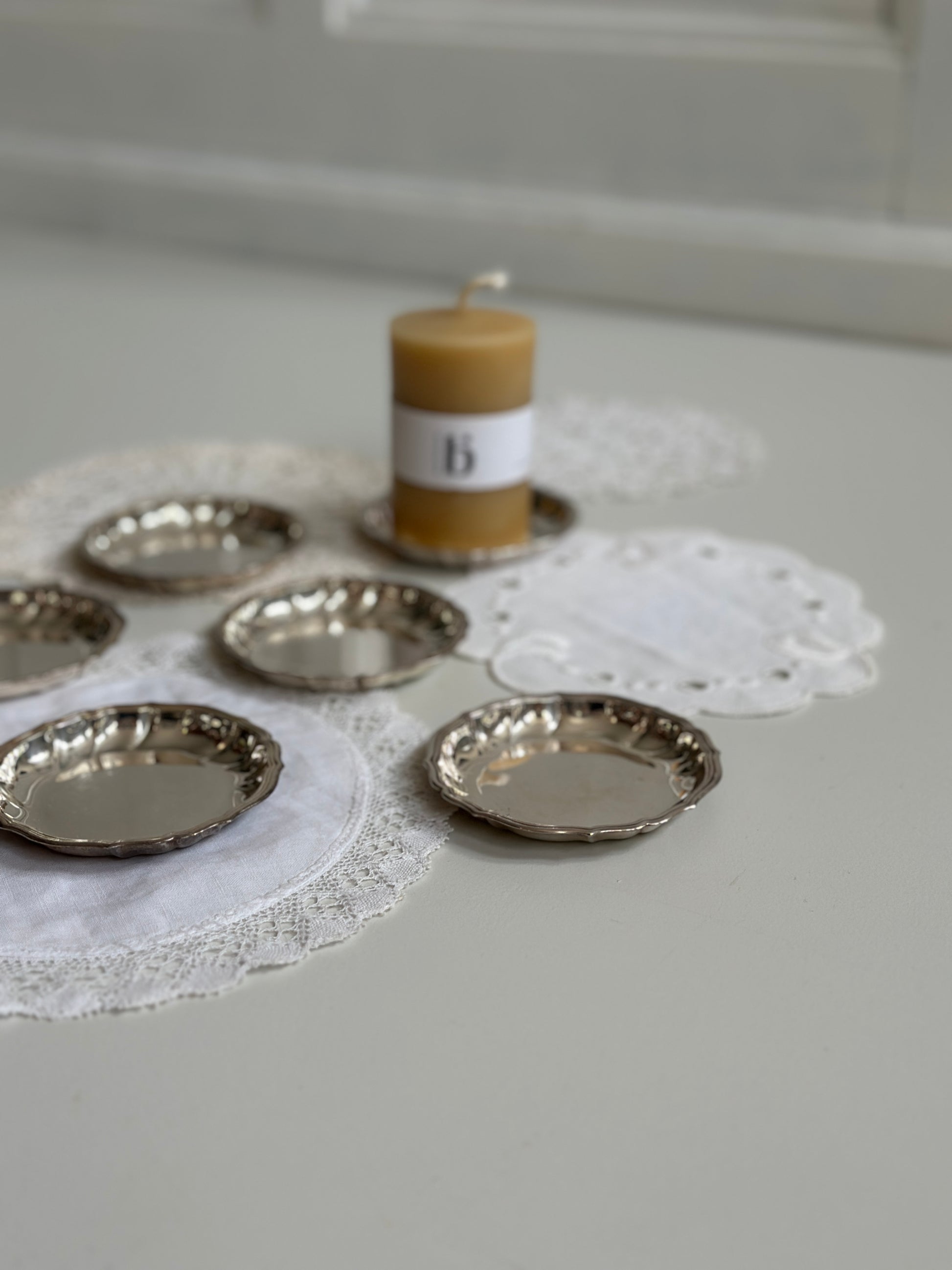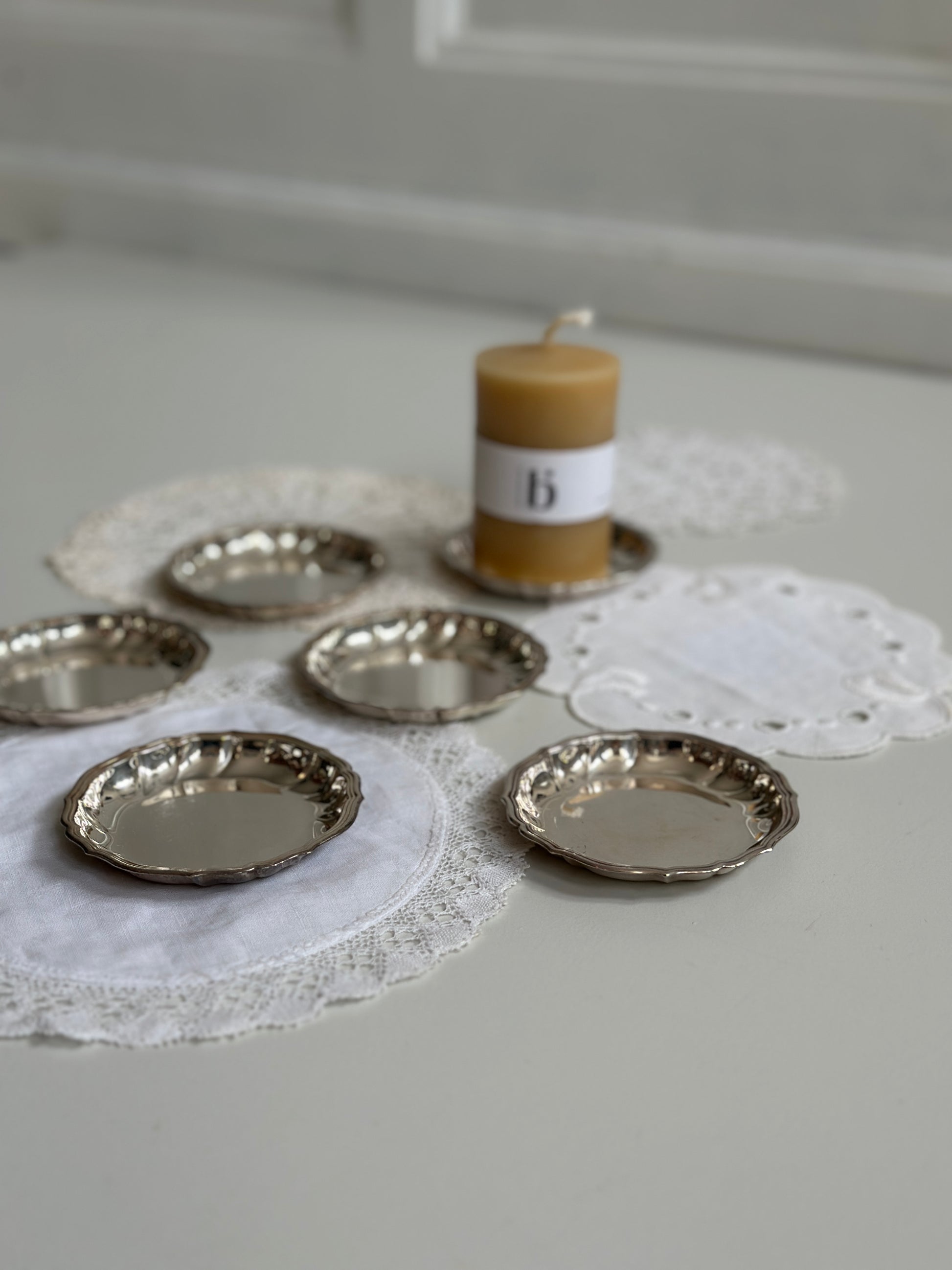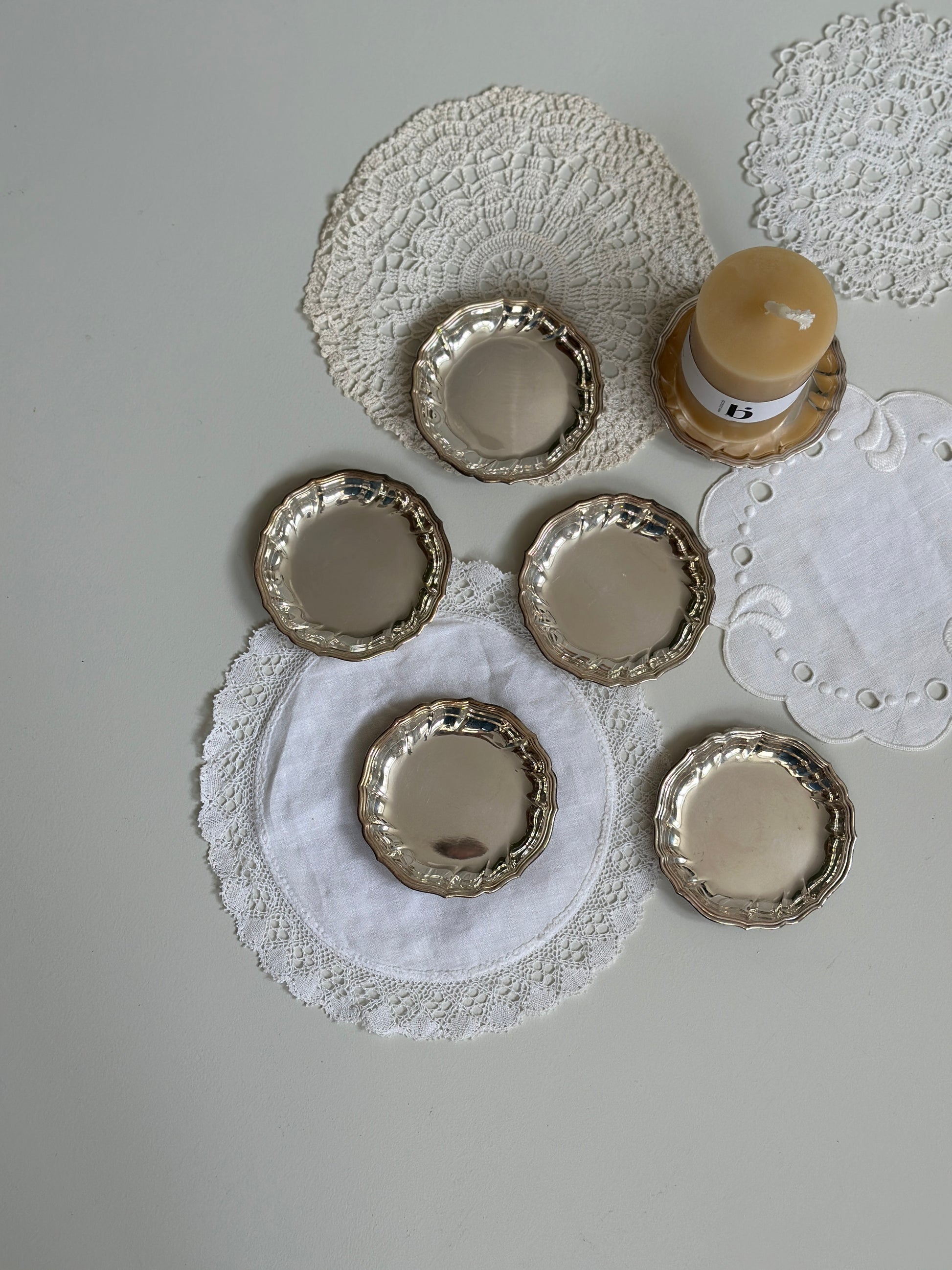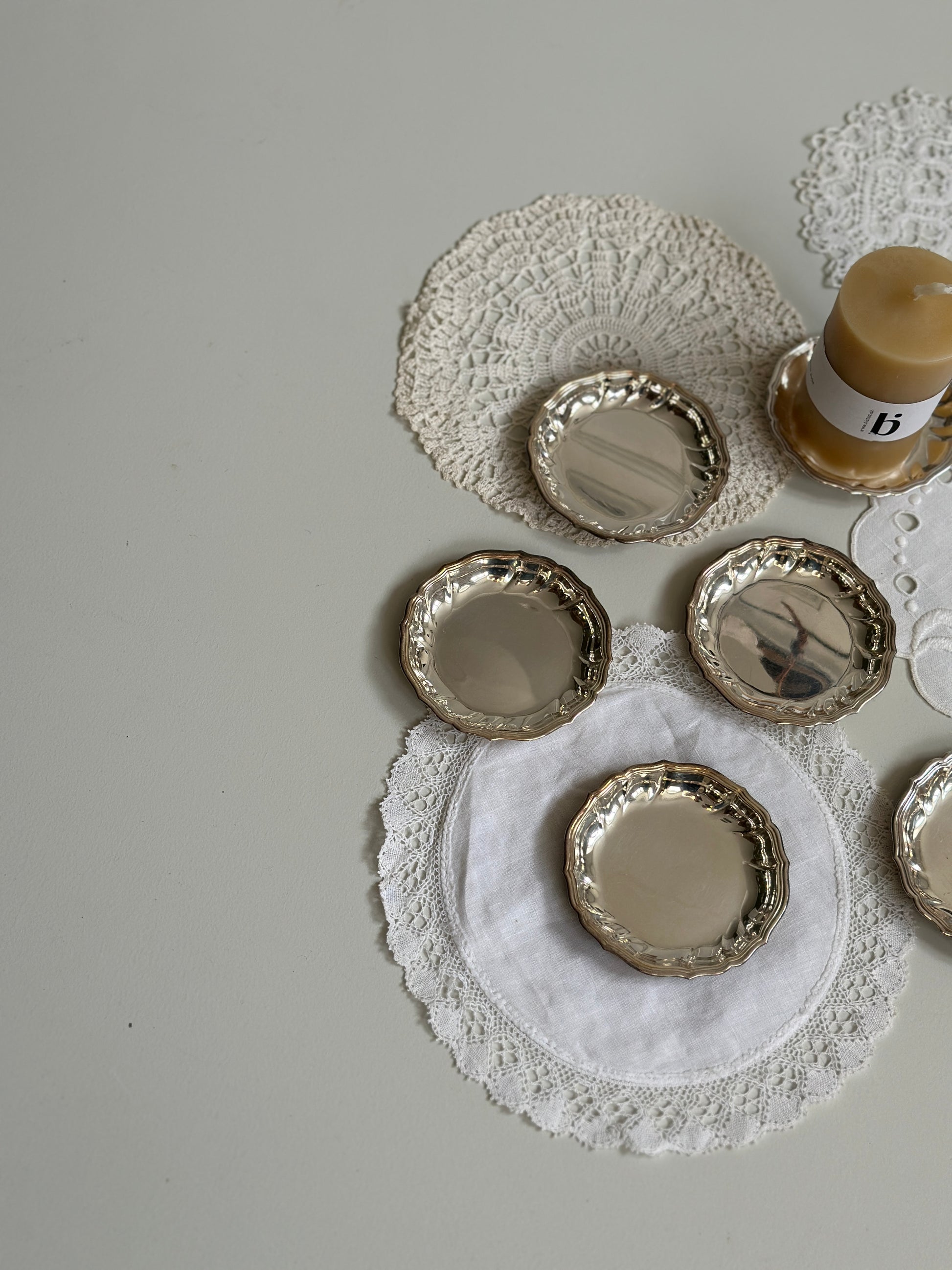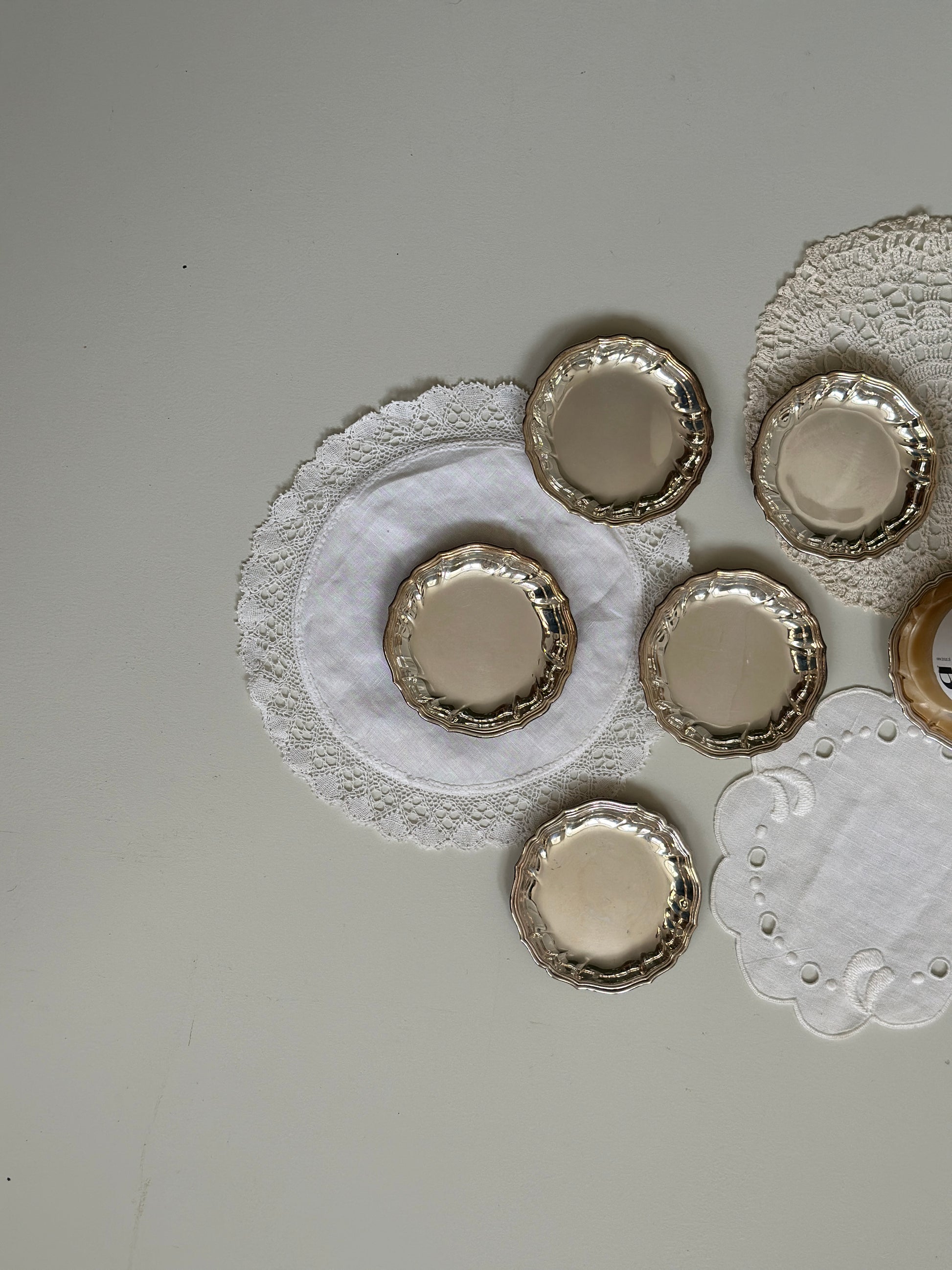 Fine små tallerkner i sølv