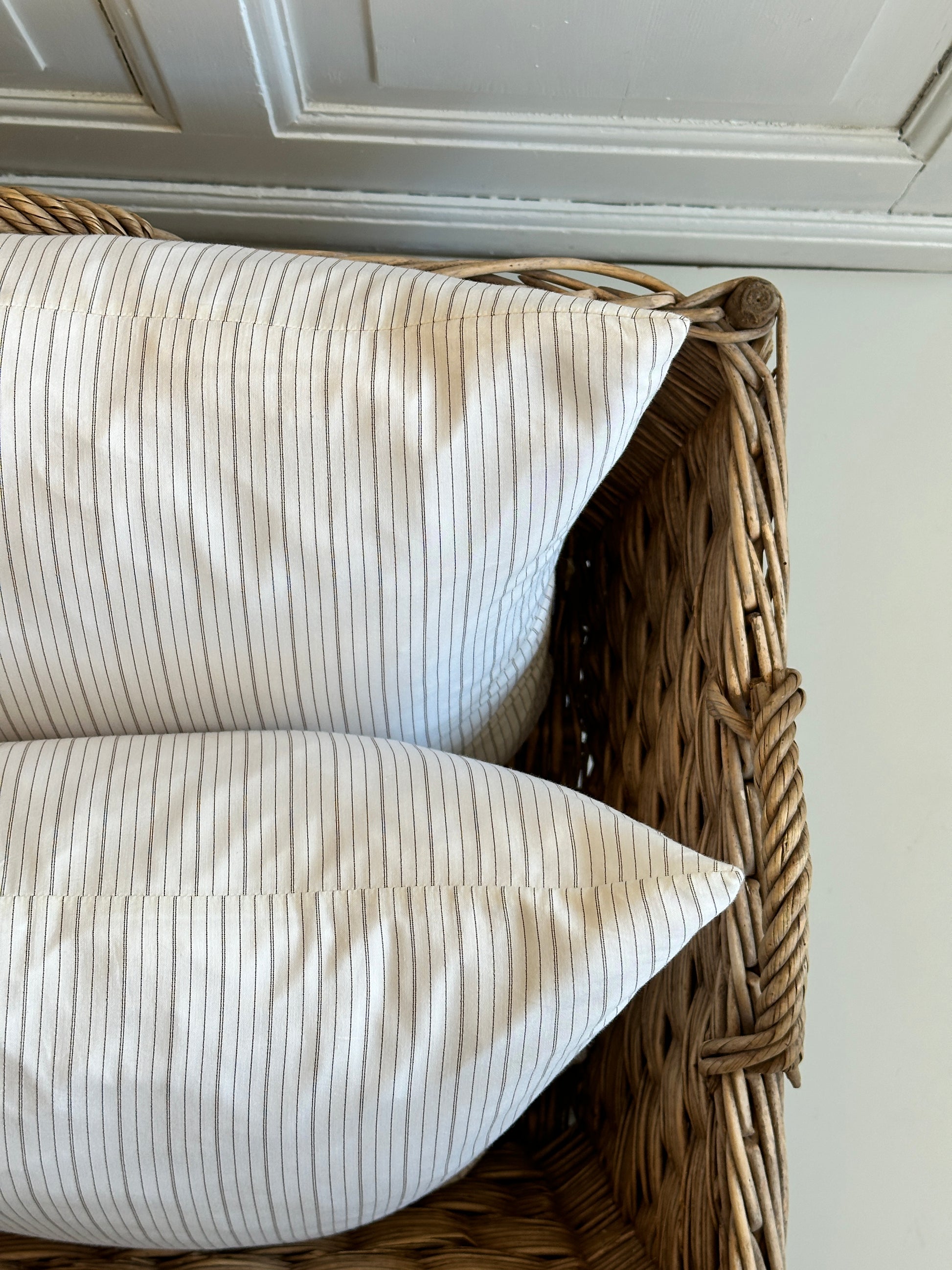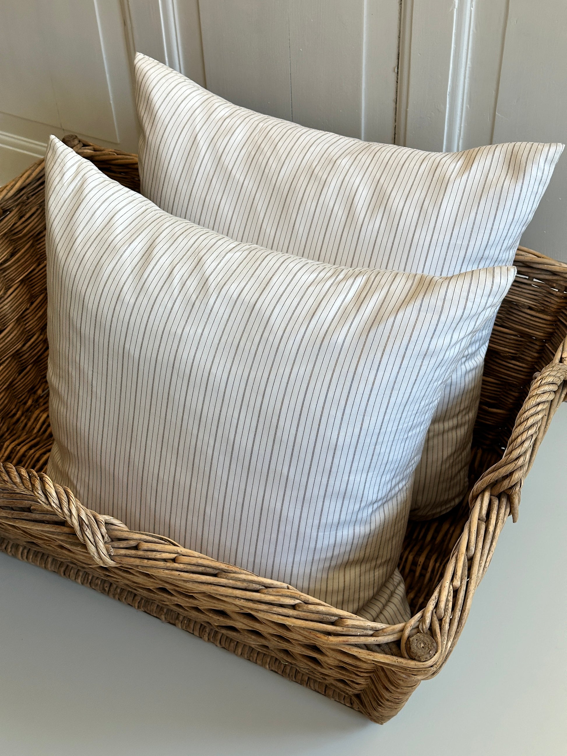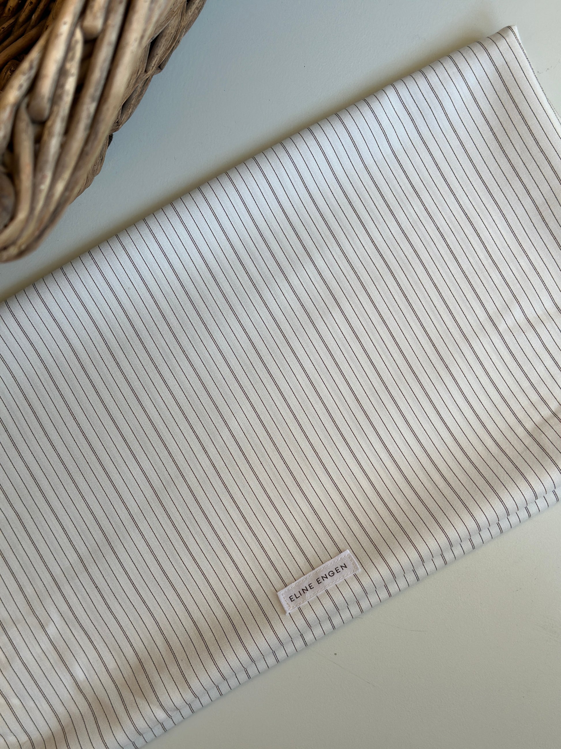 Fineste smalstribet pude i brun og creme fra danske Eline Engen