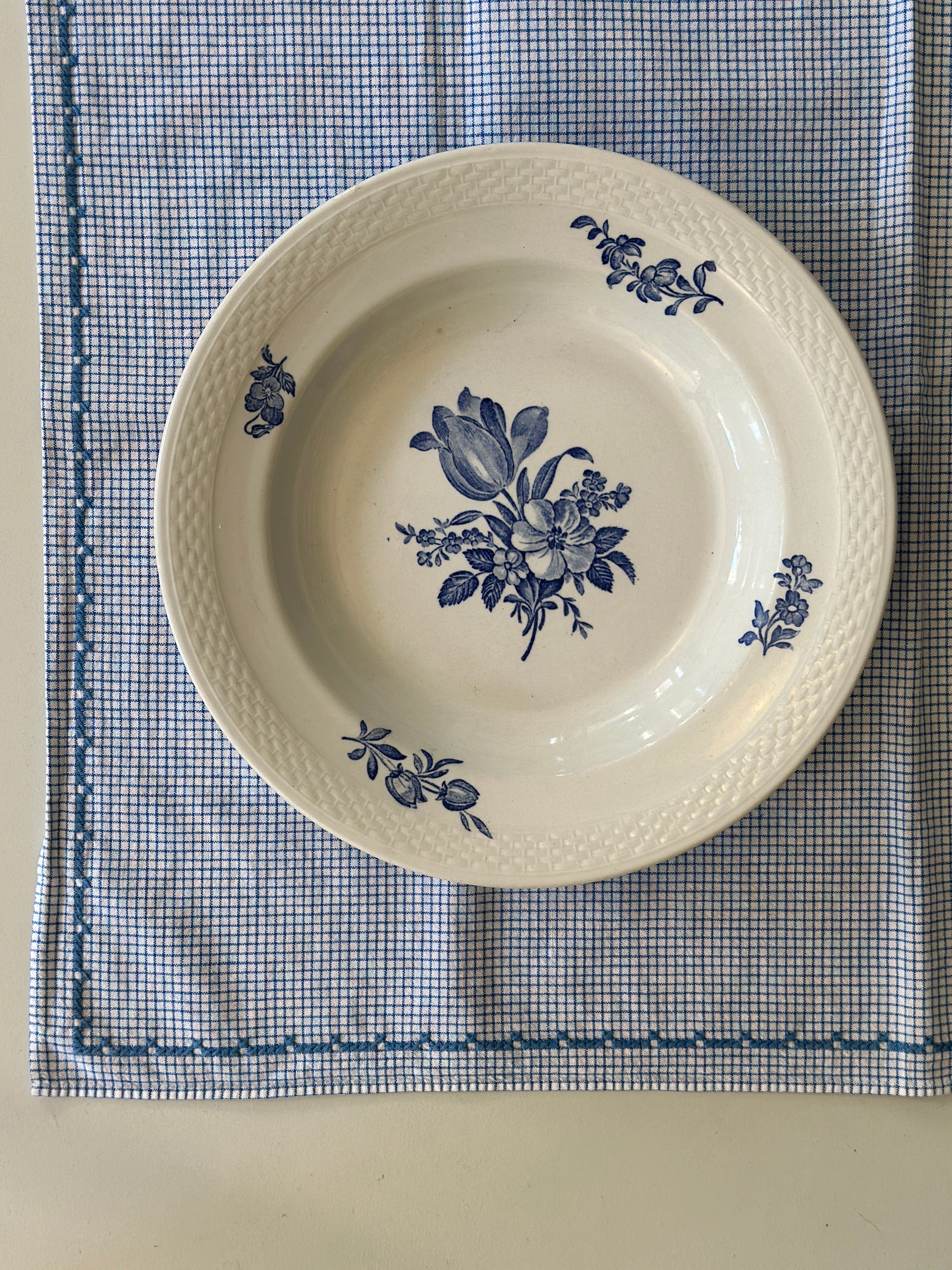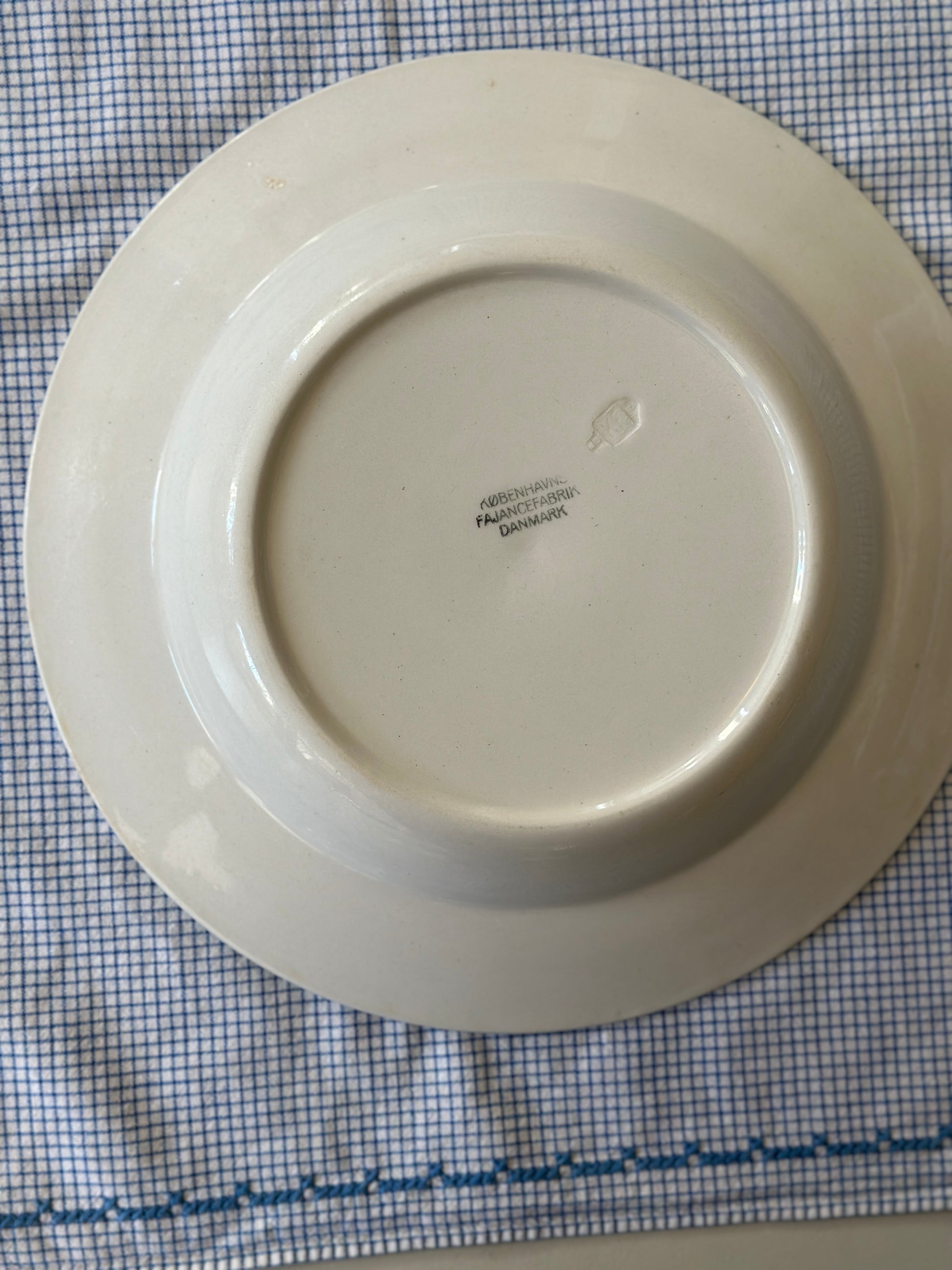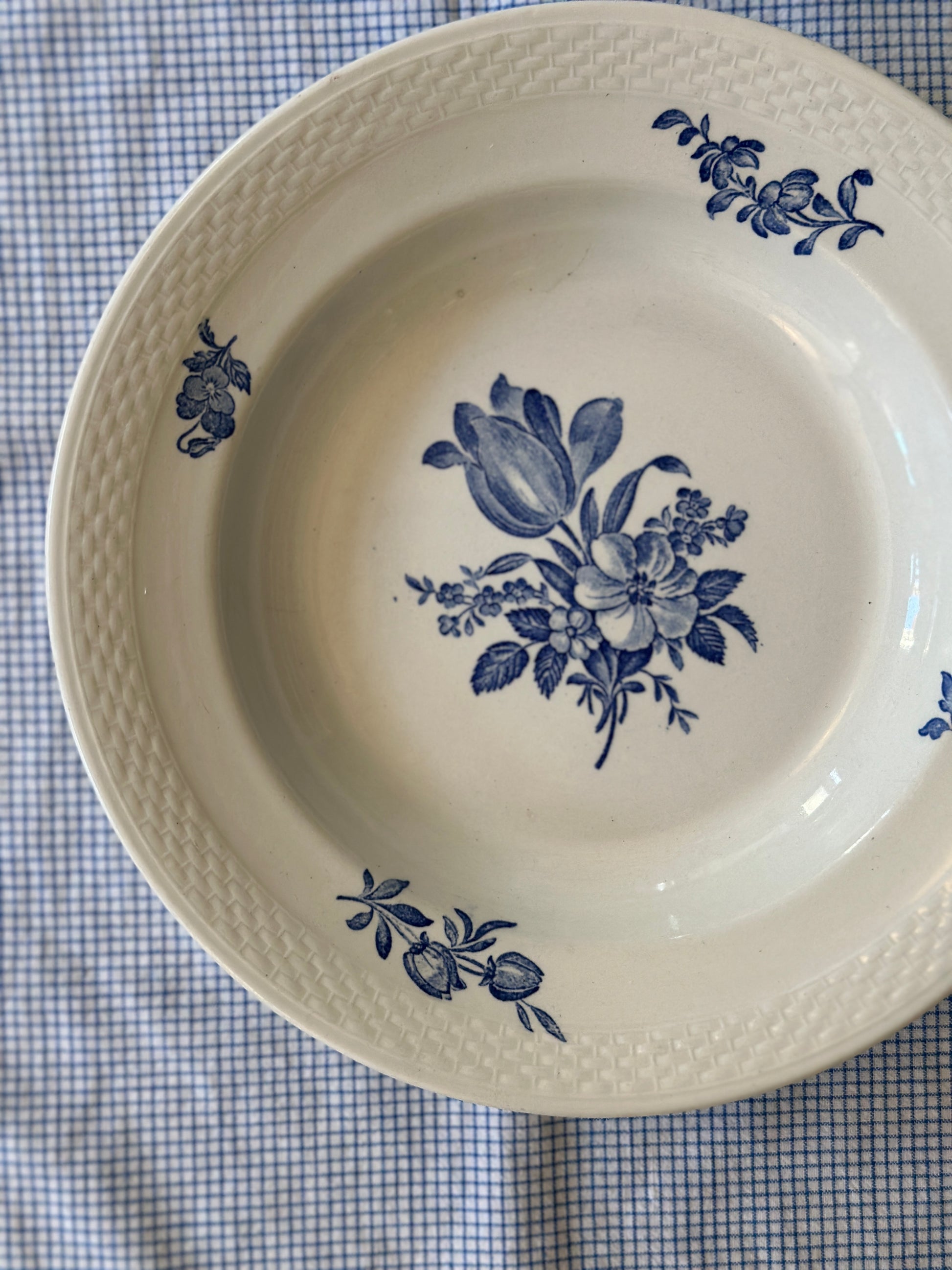 Smuk dyb platte i hvid med blå blomst fra Københavns Porcelæns Fabrik