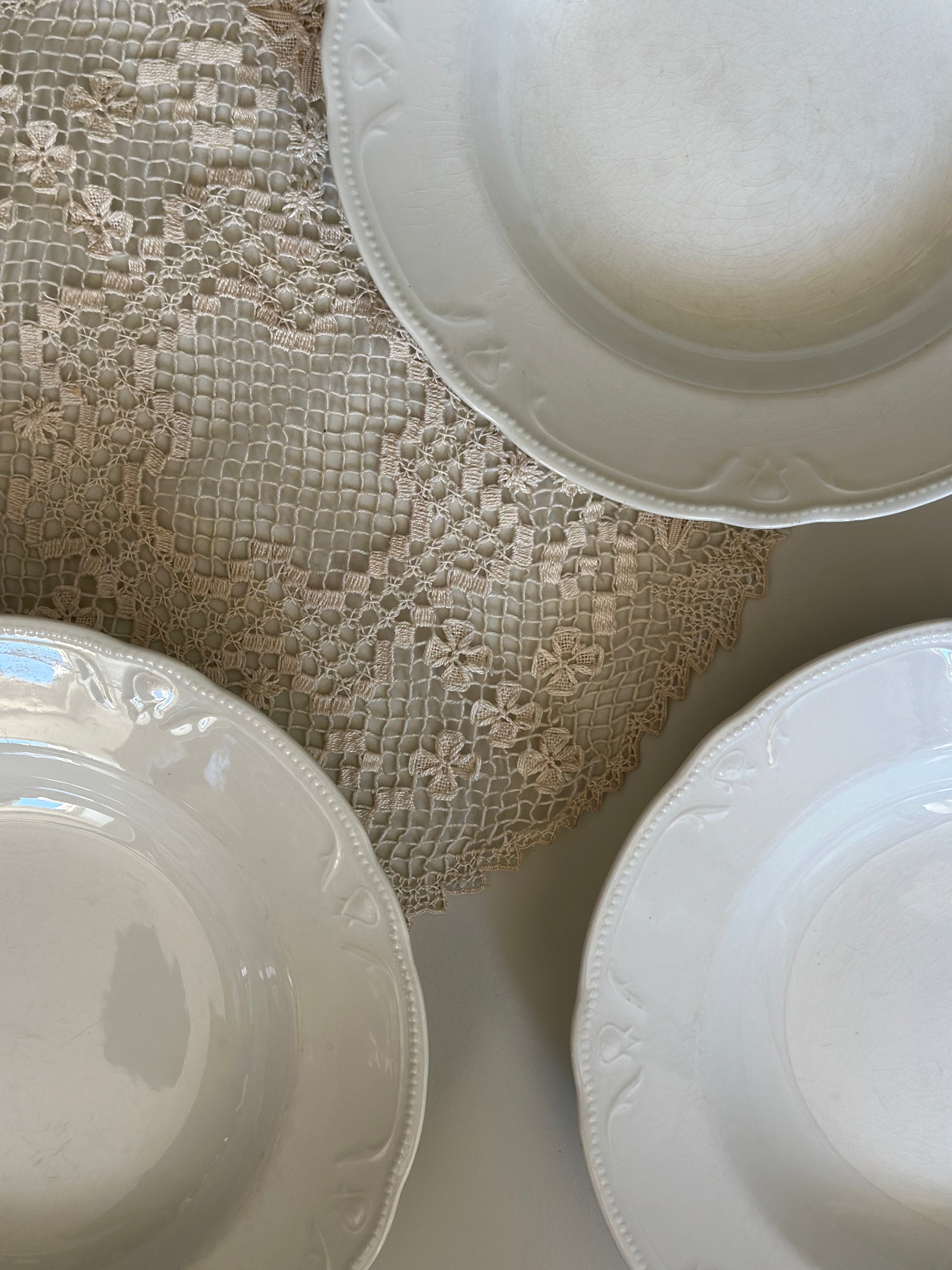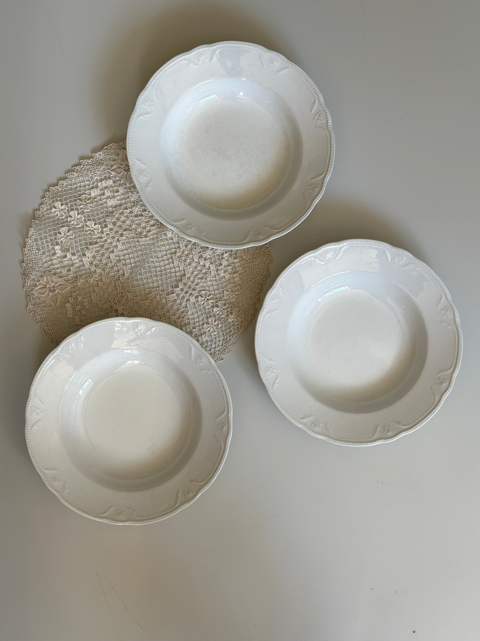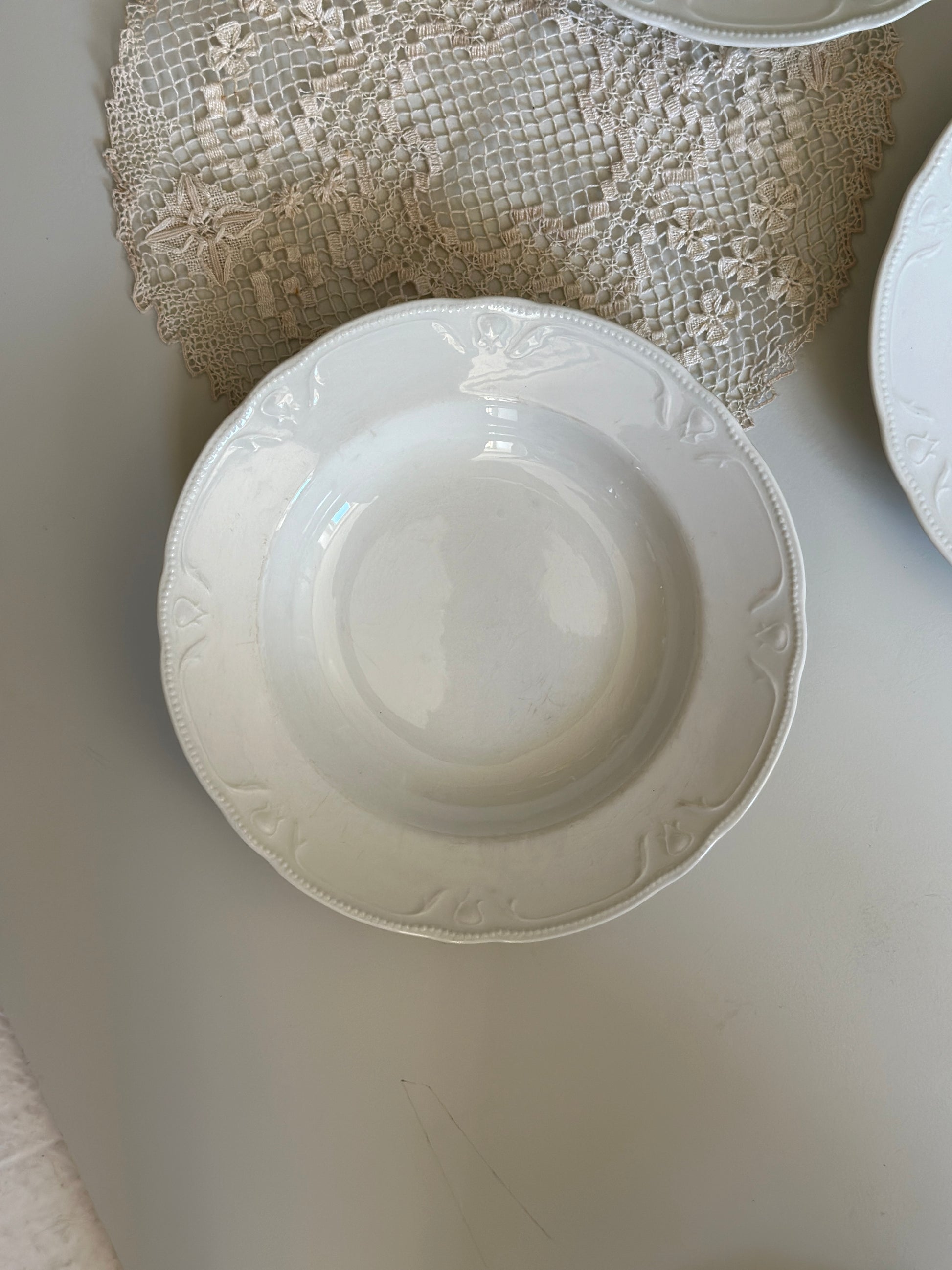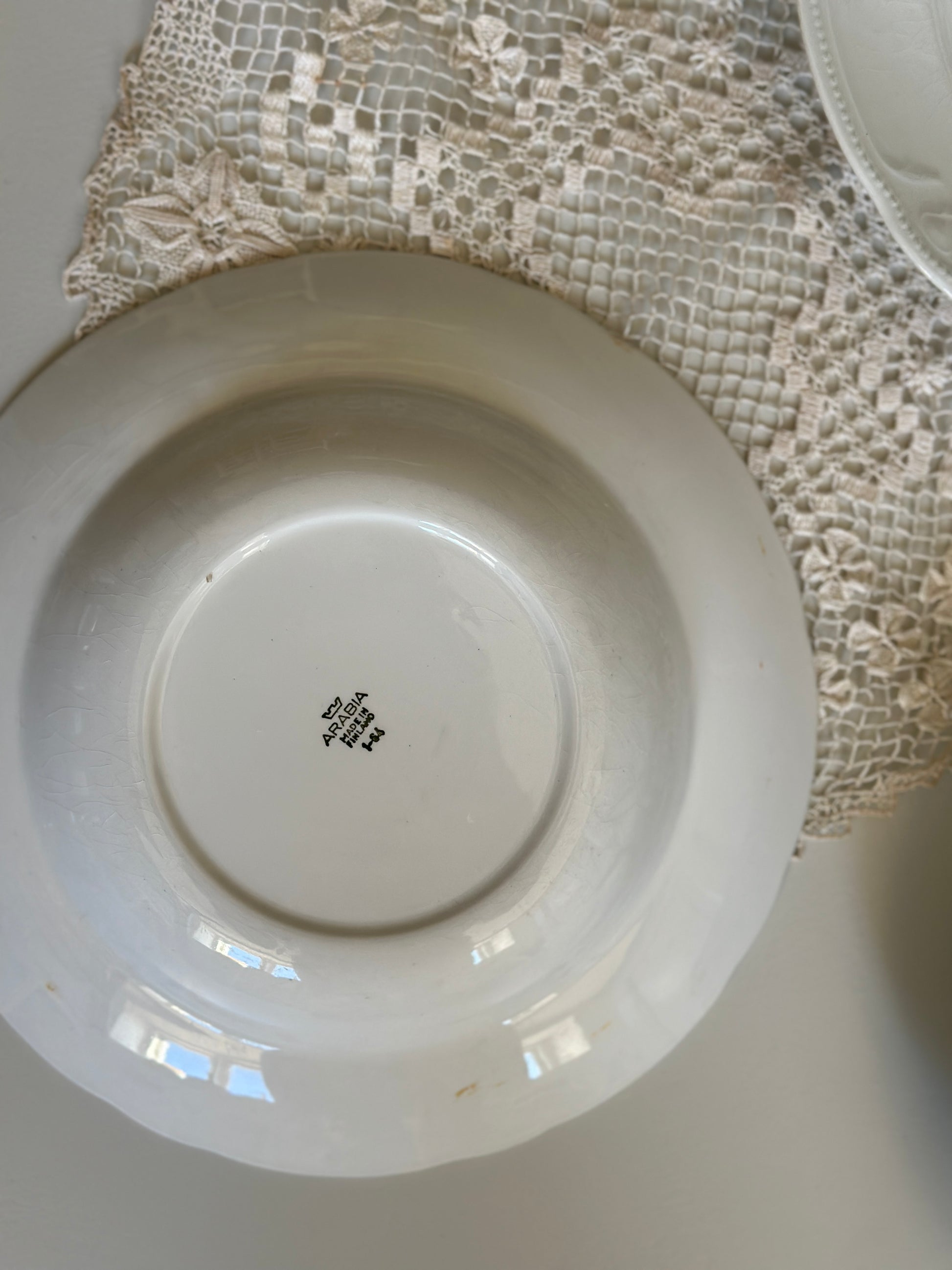 Smukke hvide dybe tallerkner fra finske Arabia med mønster rundt i kanten