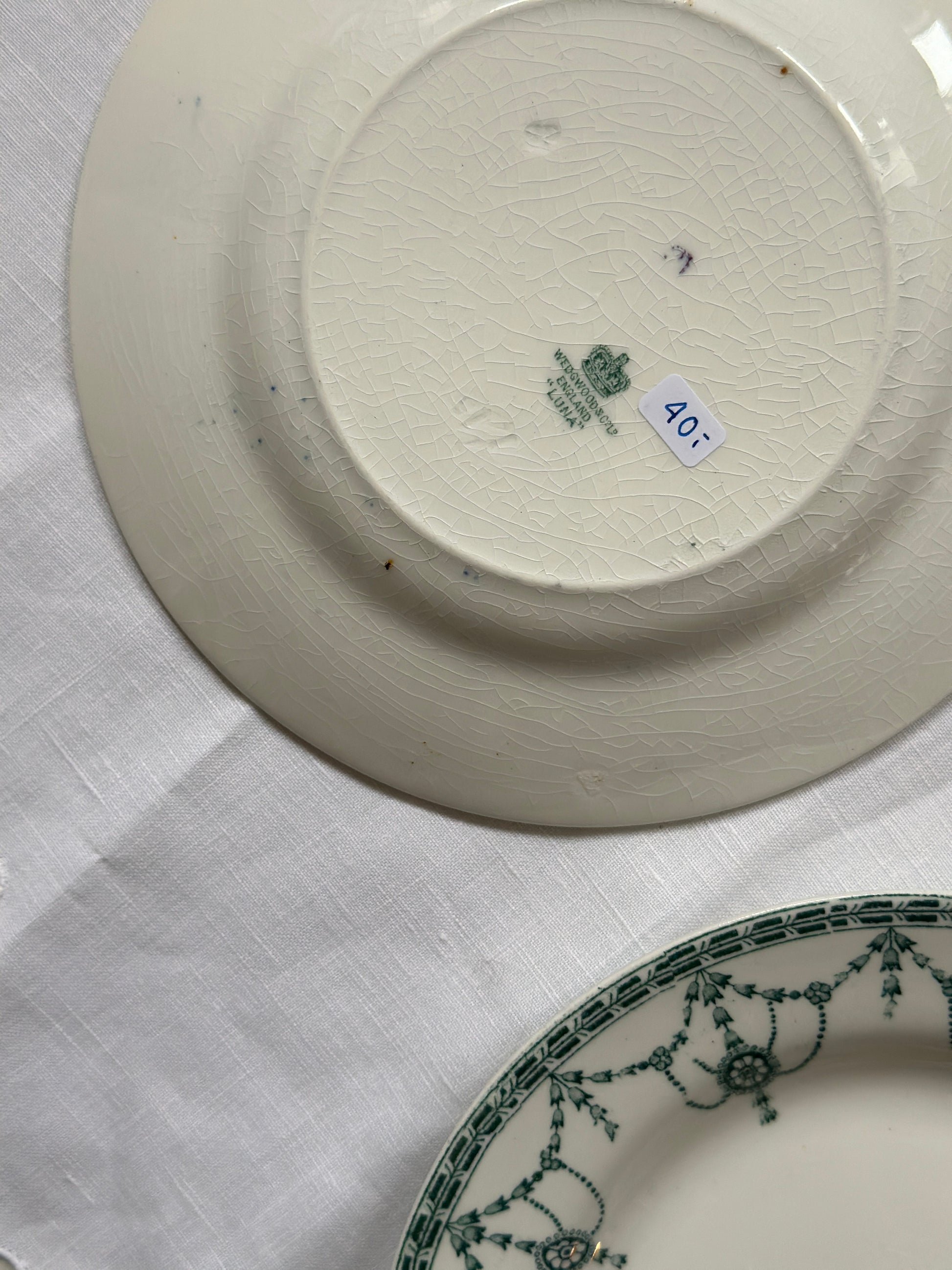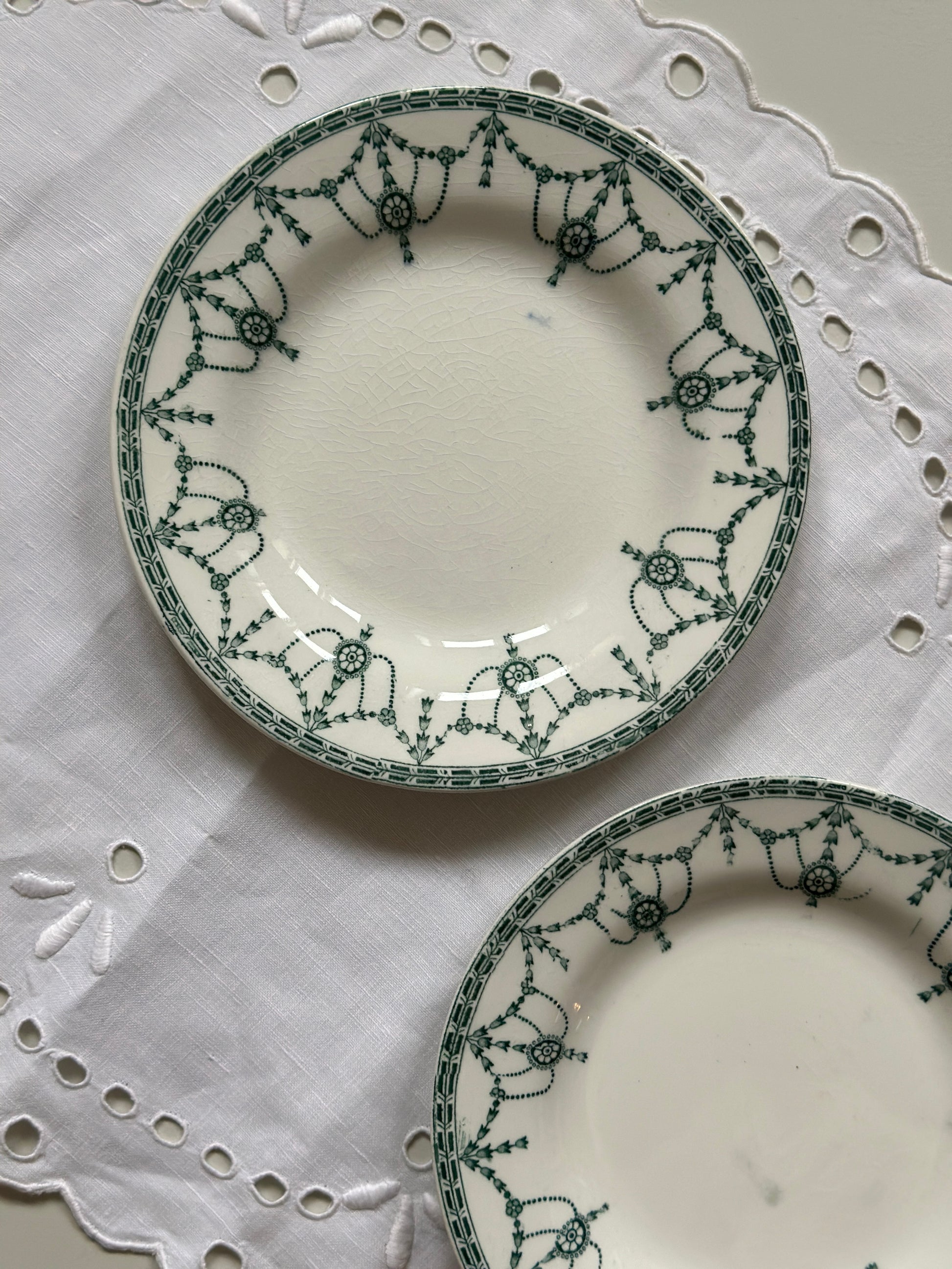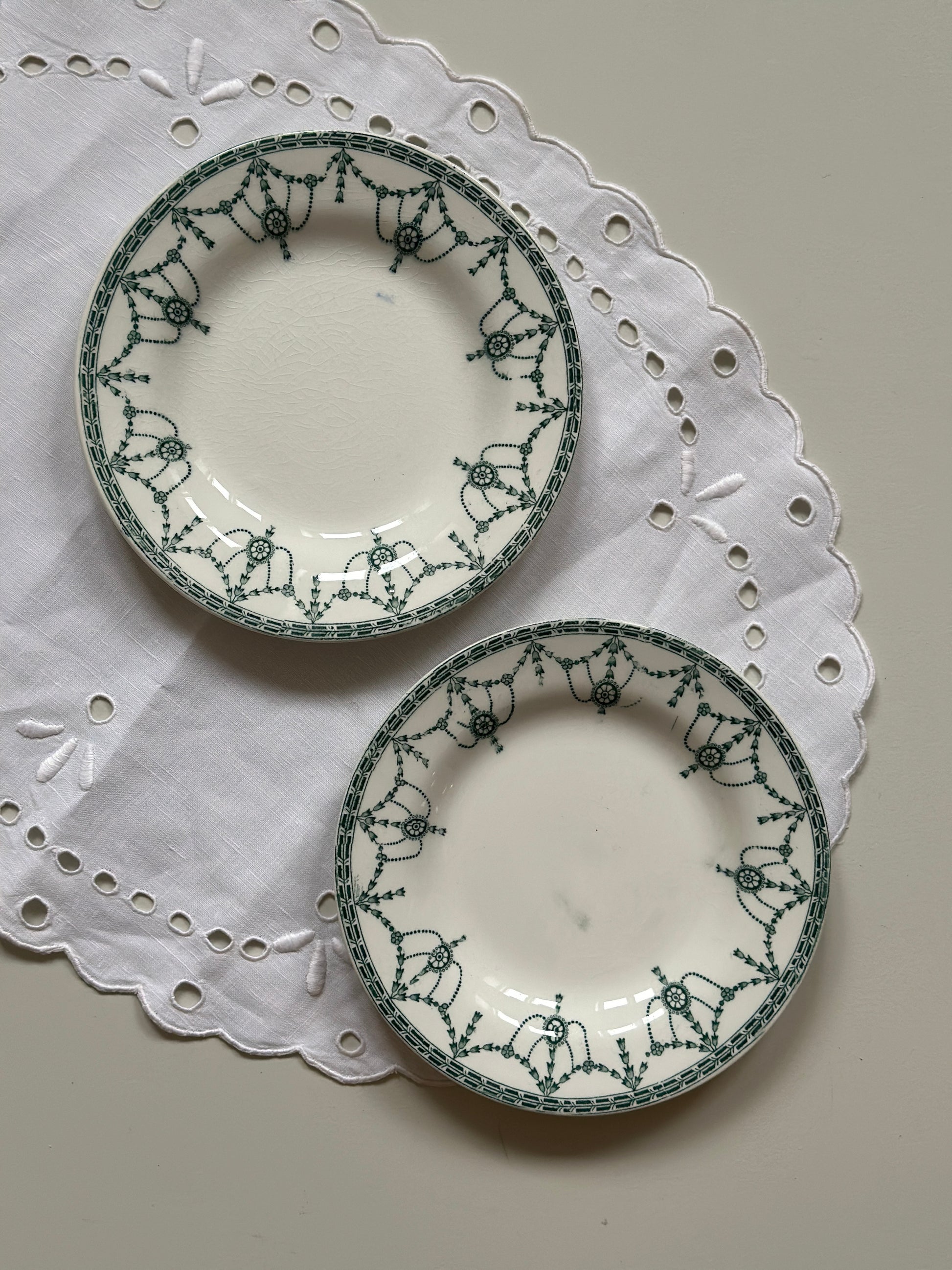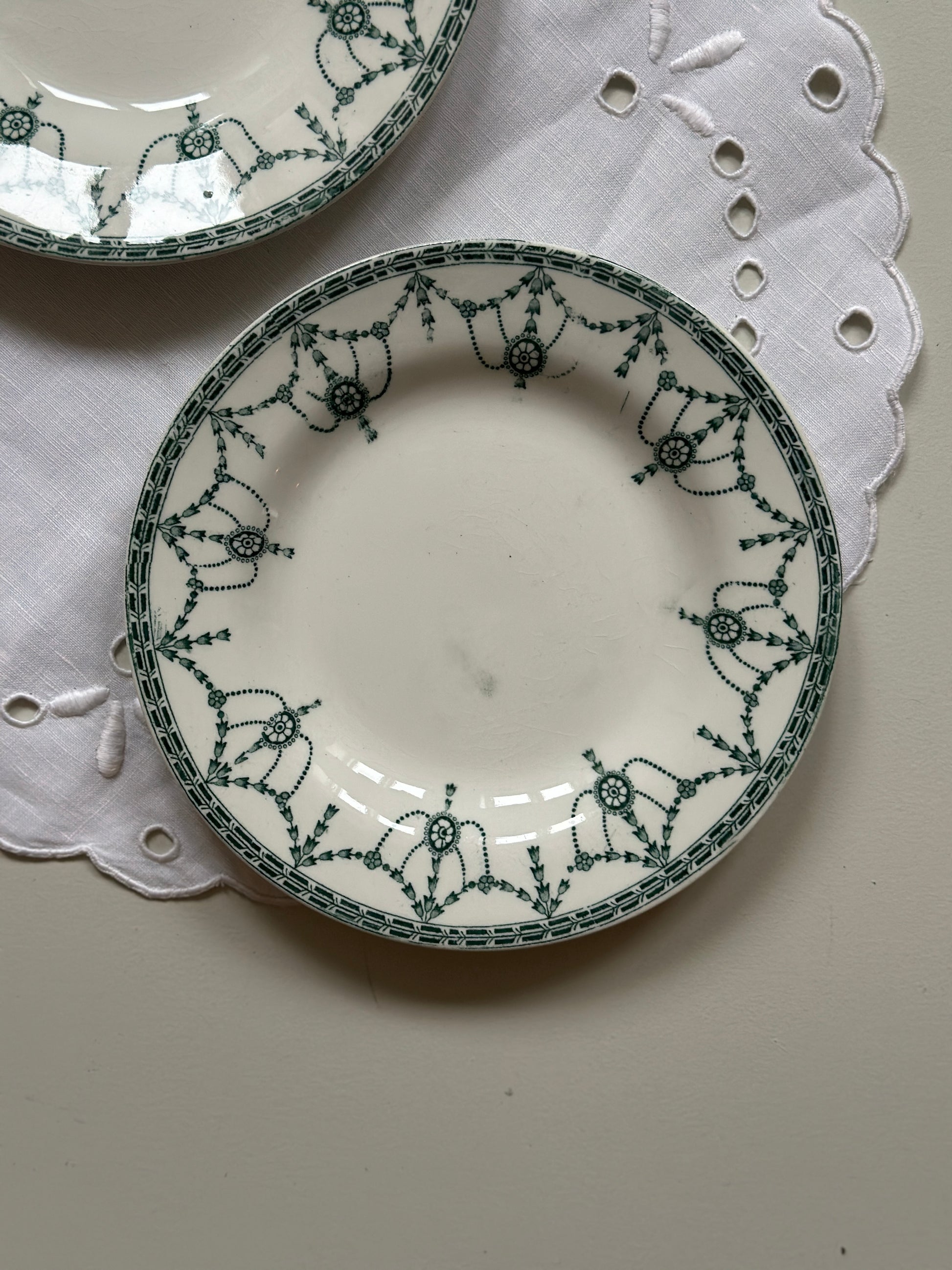 Smukke engelske kagetallerkner med grønt motiv