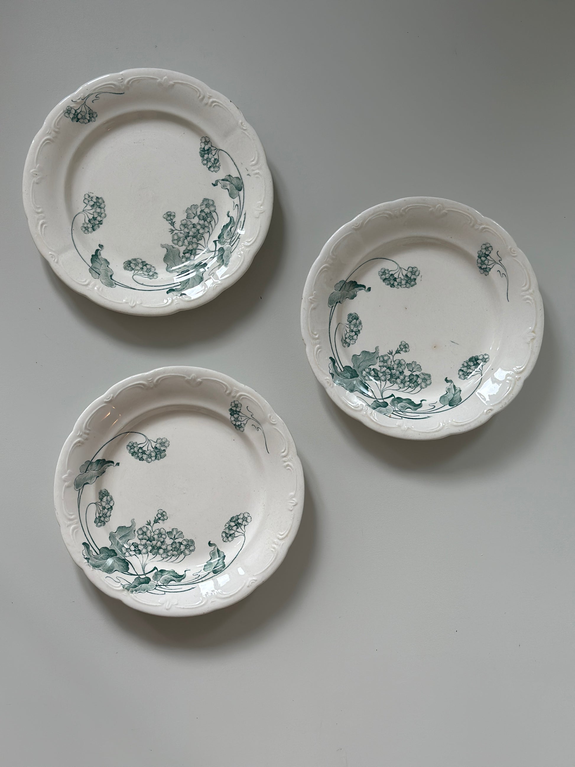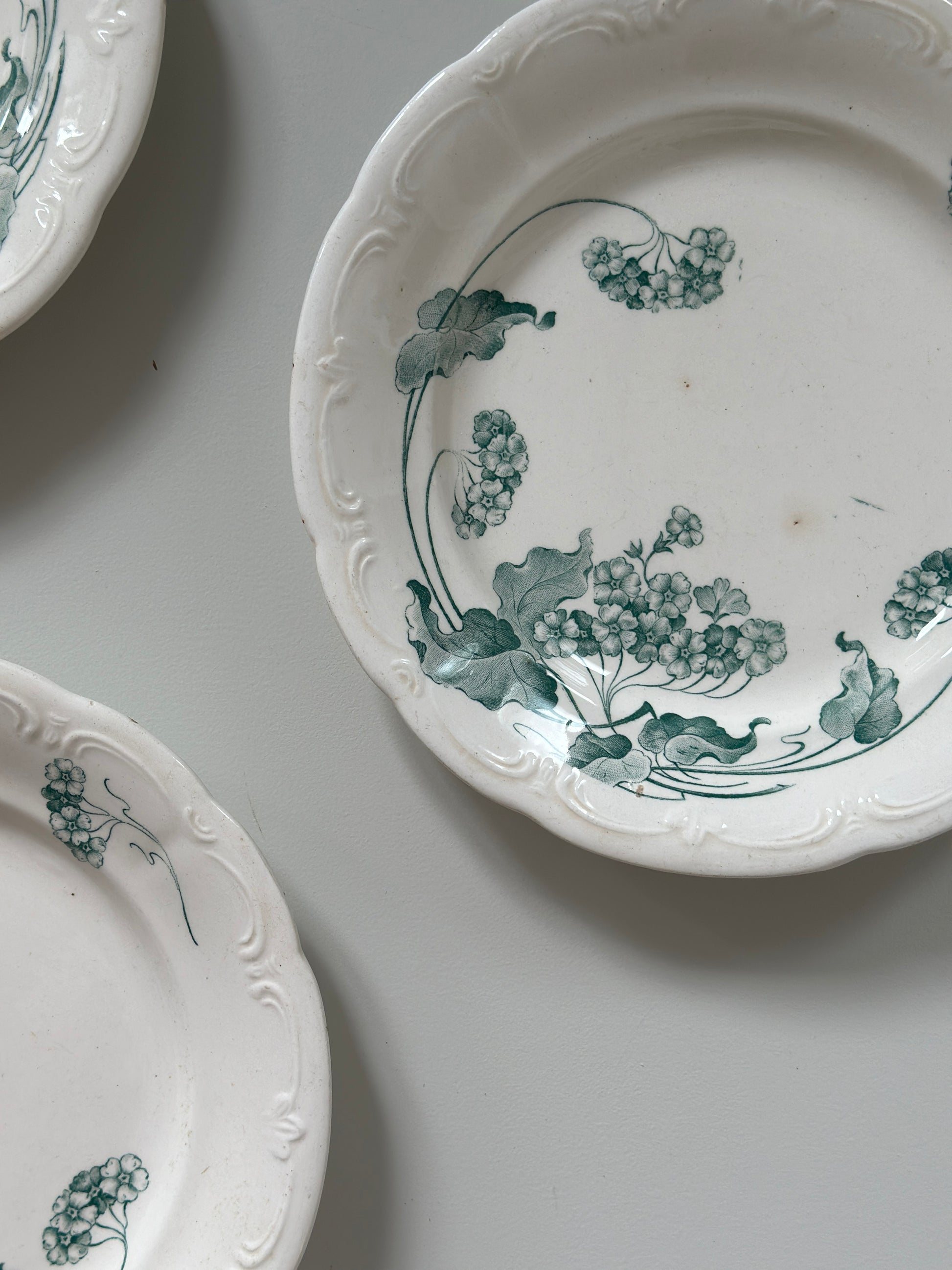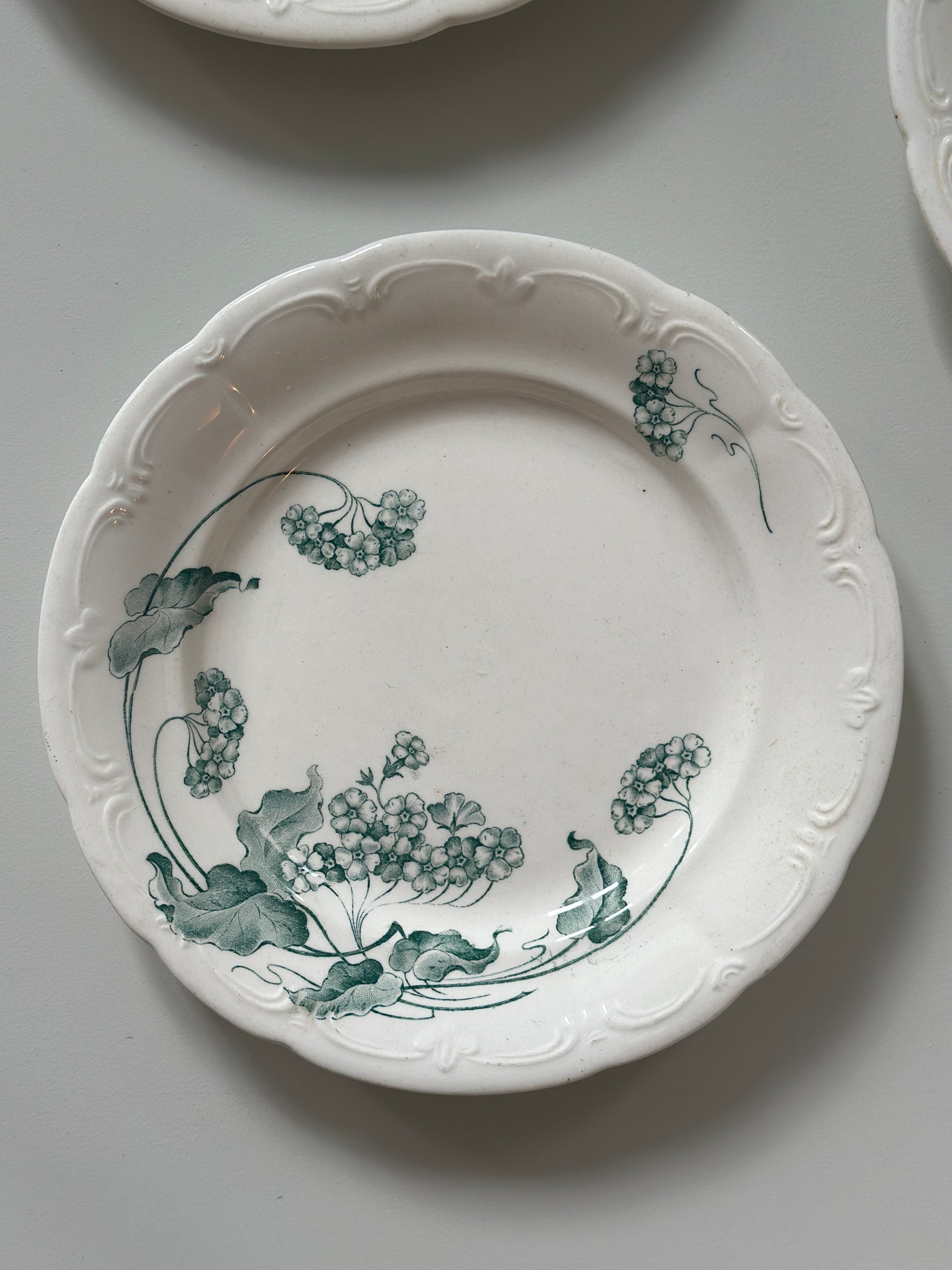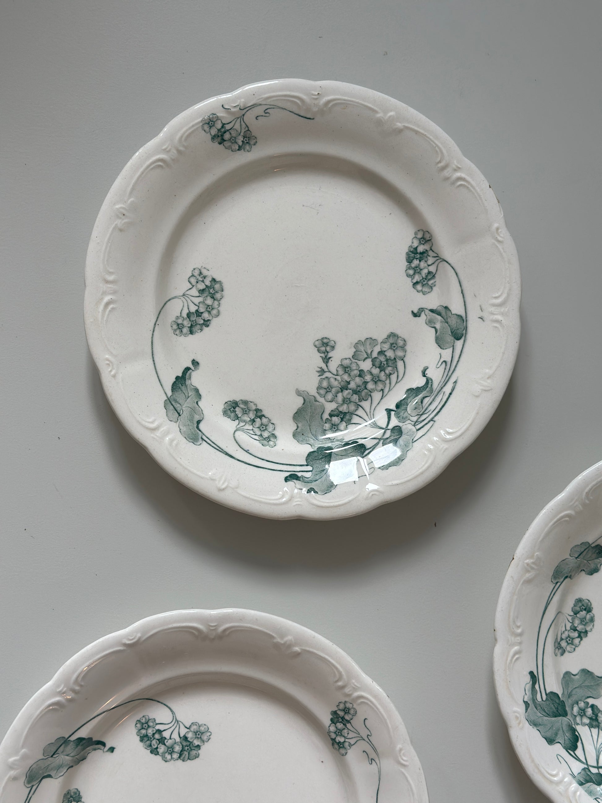 Smukke spisetallerkner med grønne blomster og fine detaljer rundt i kanten