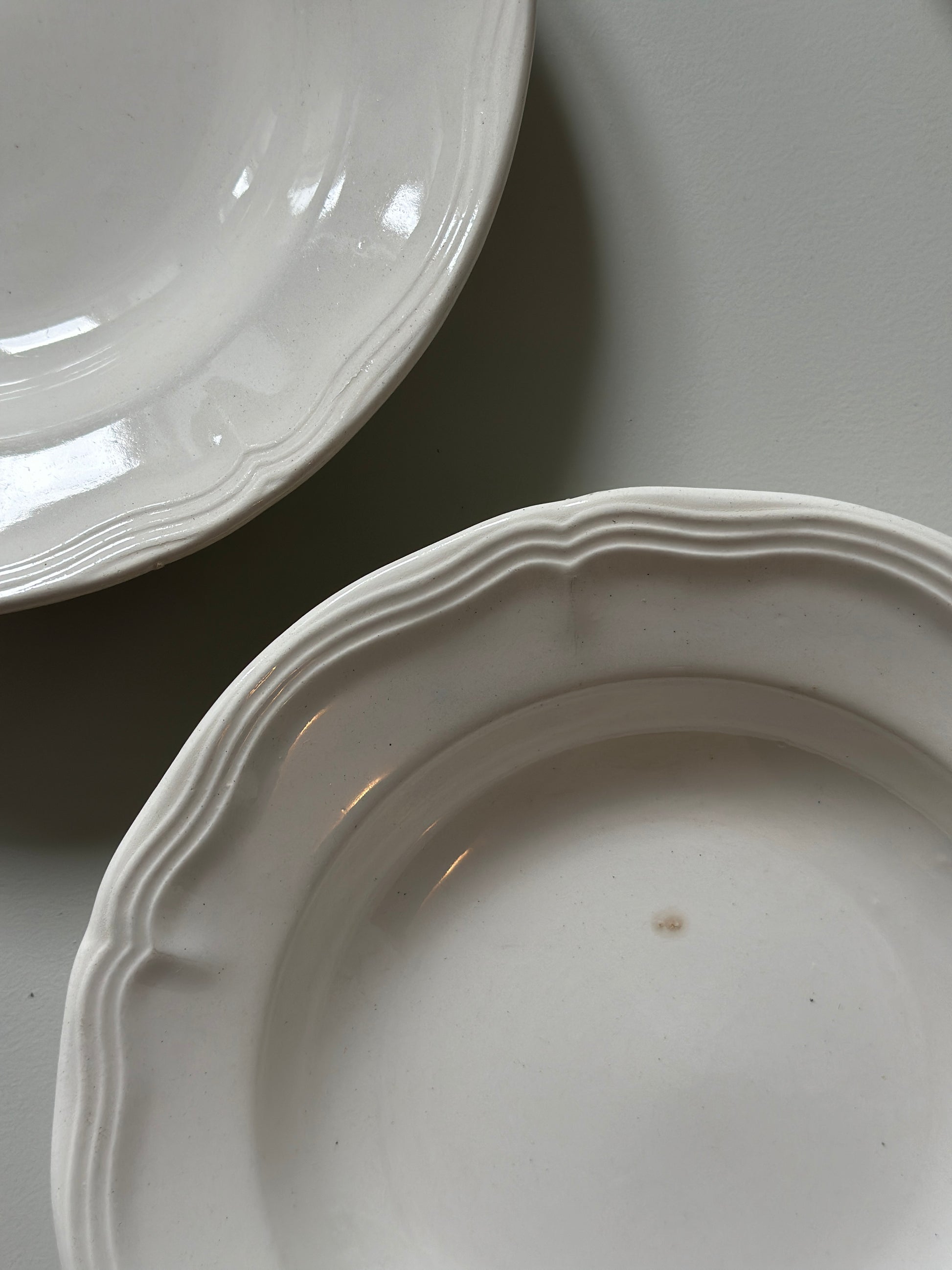 Smukkeste dybe tallerkner i creme med den fineste kant