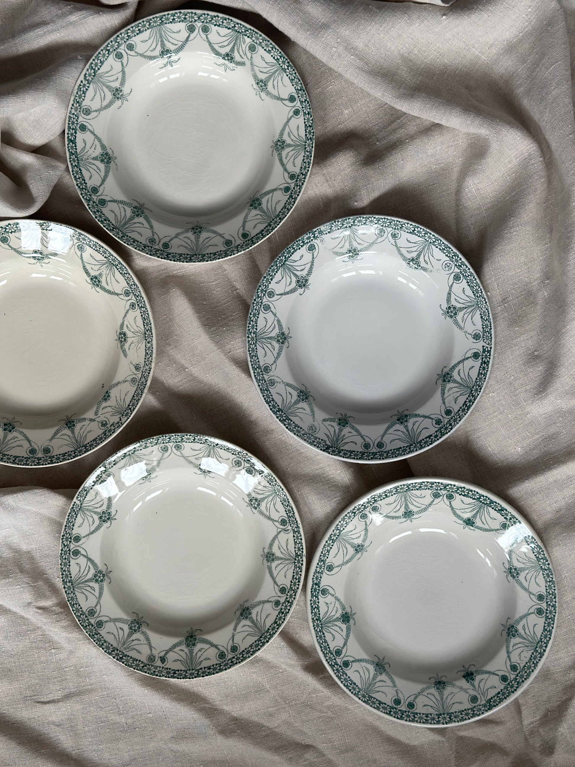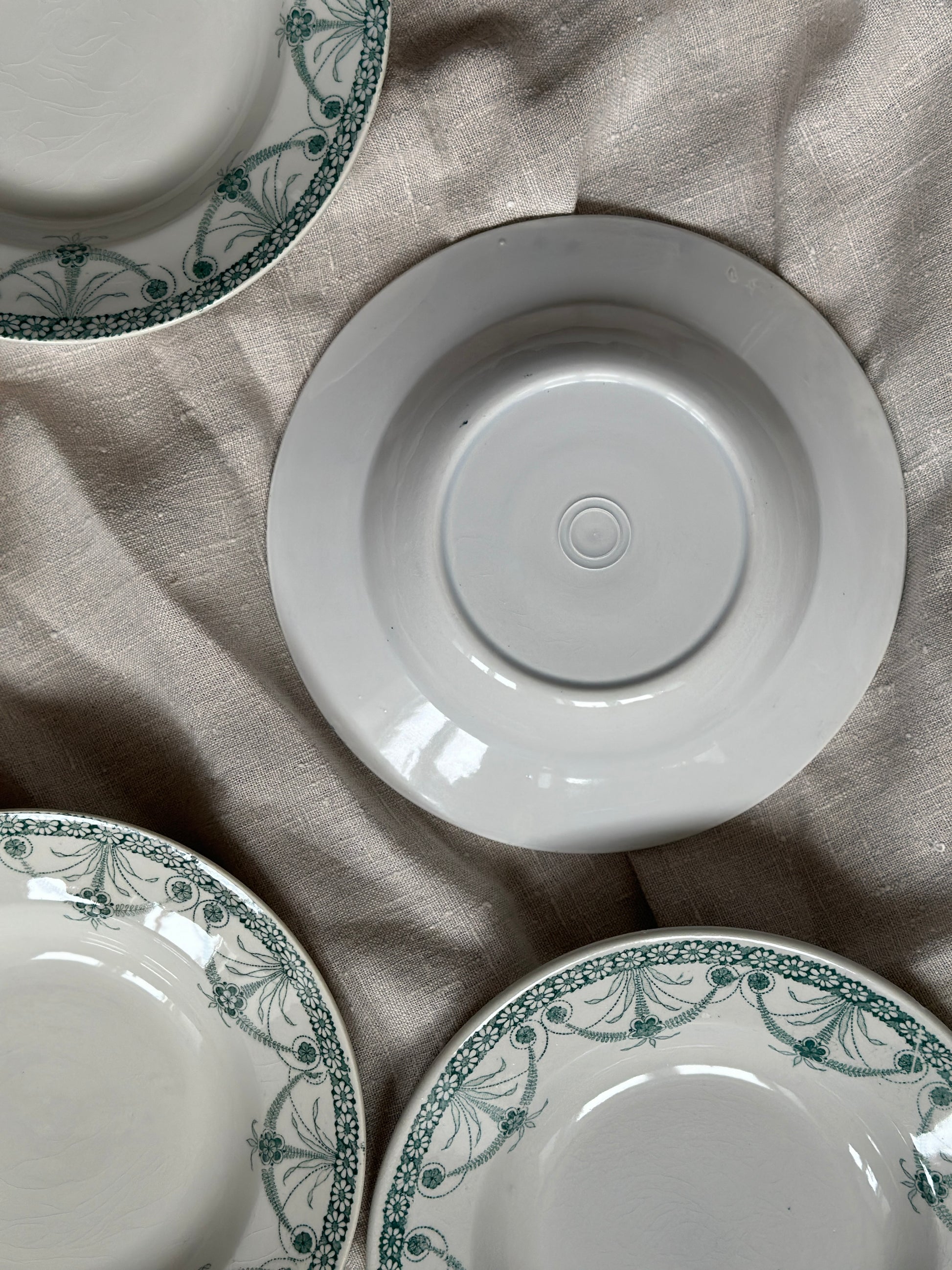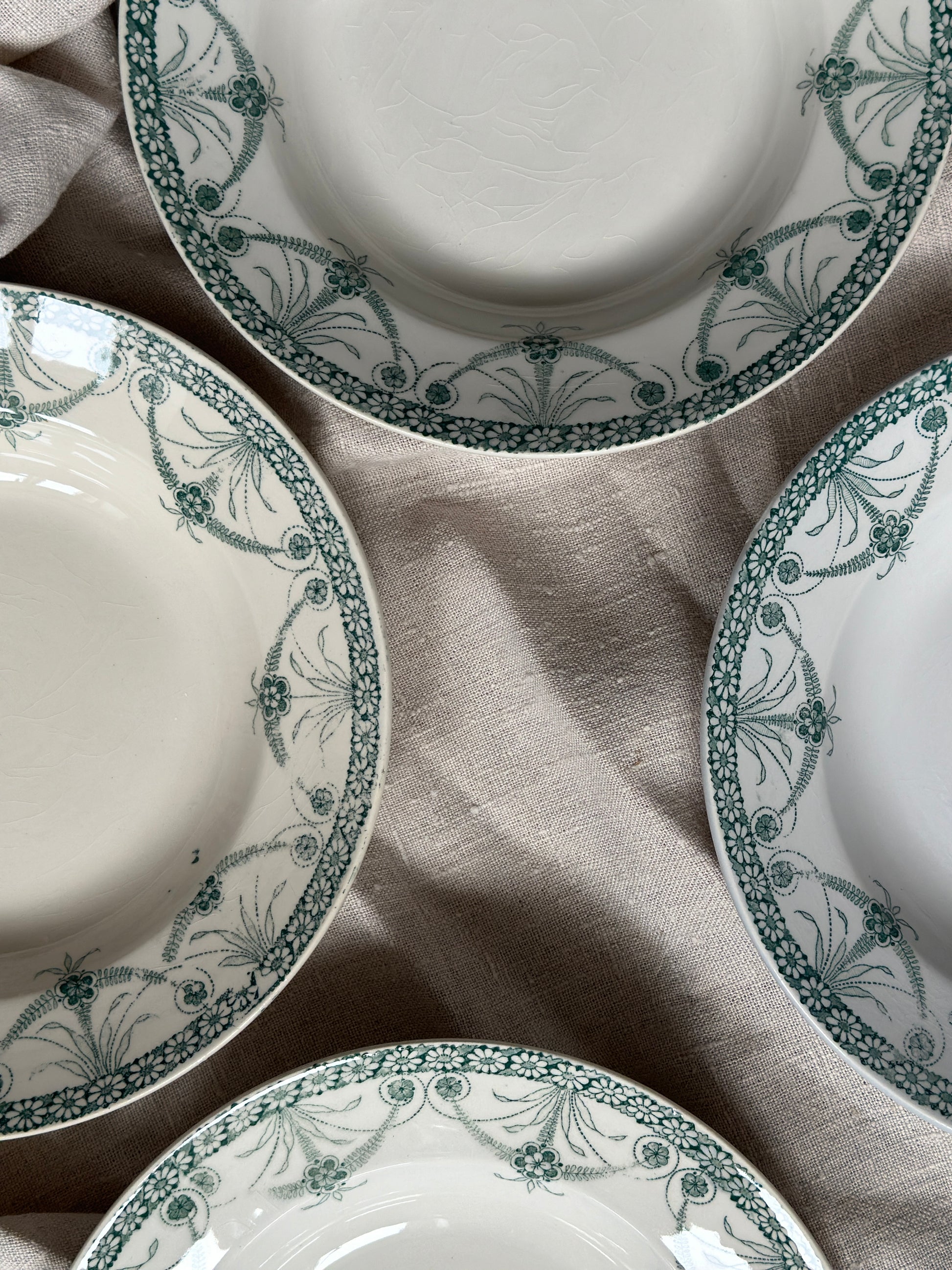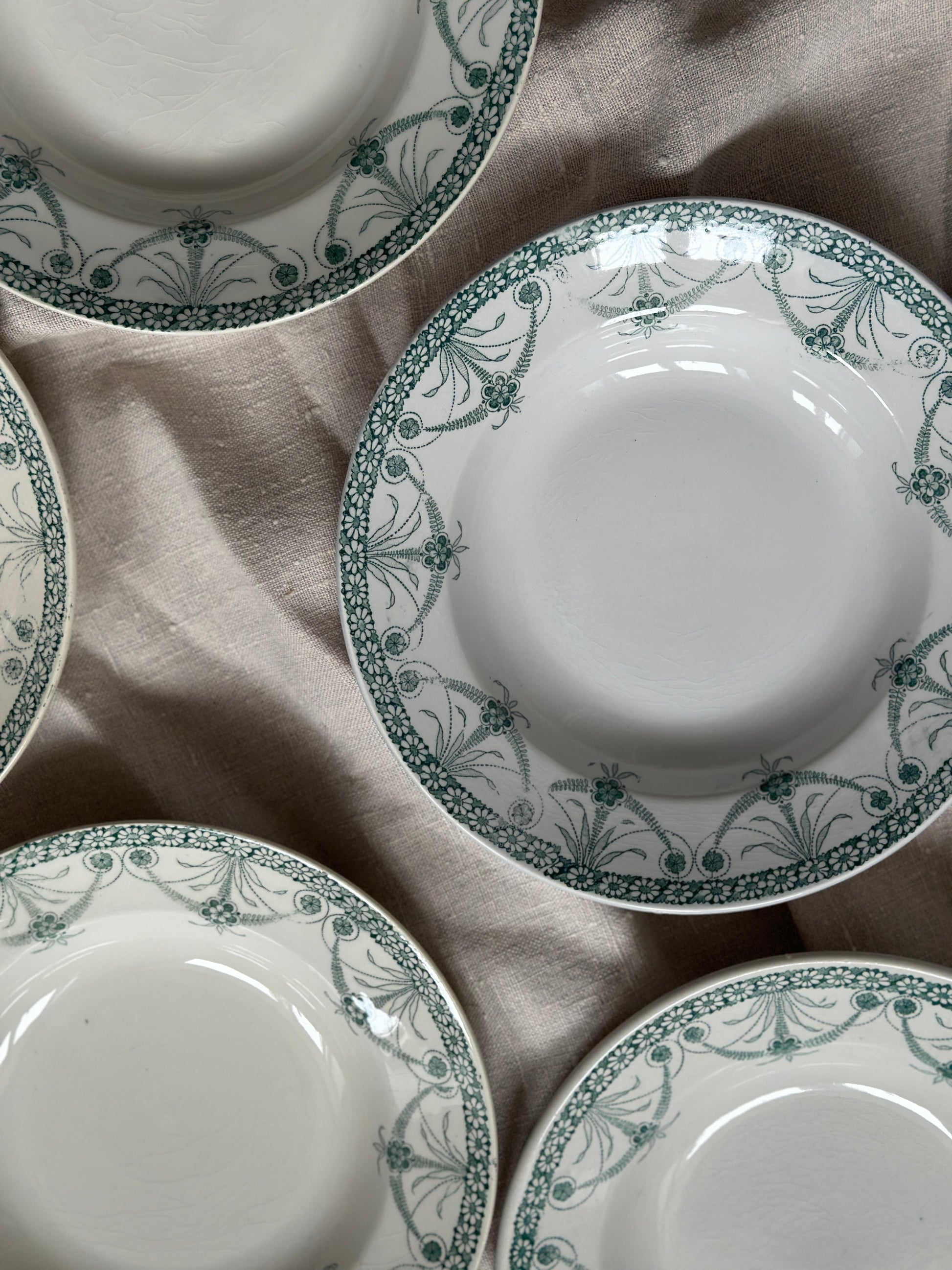Dybe tallerkner med fineste grønne blomstermotiv i kanten