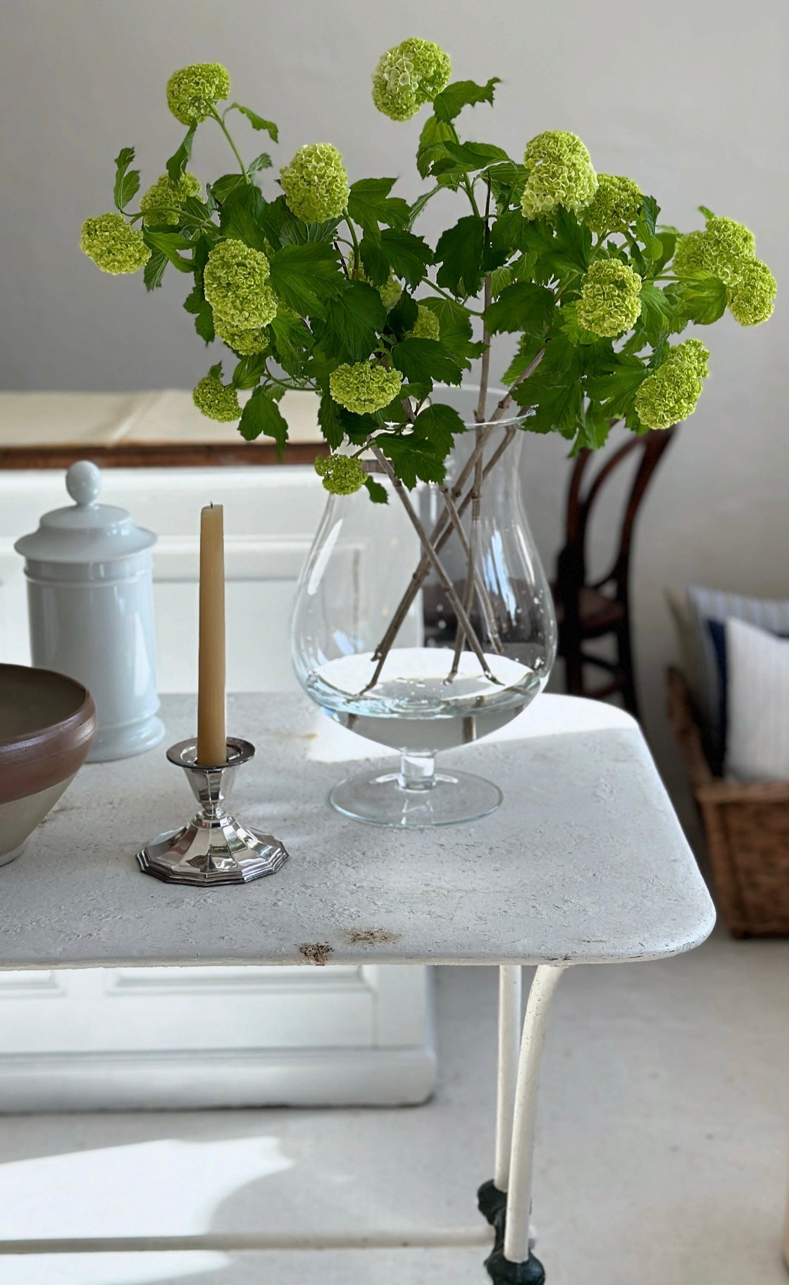 Stor flot vase i glas på fod