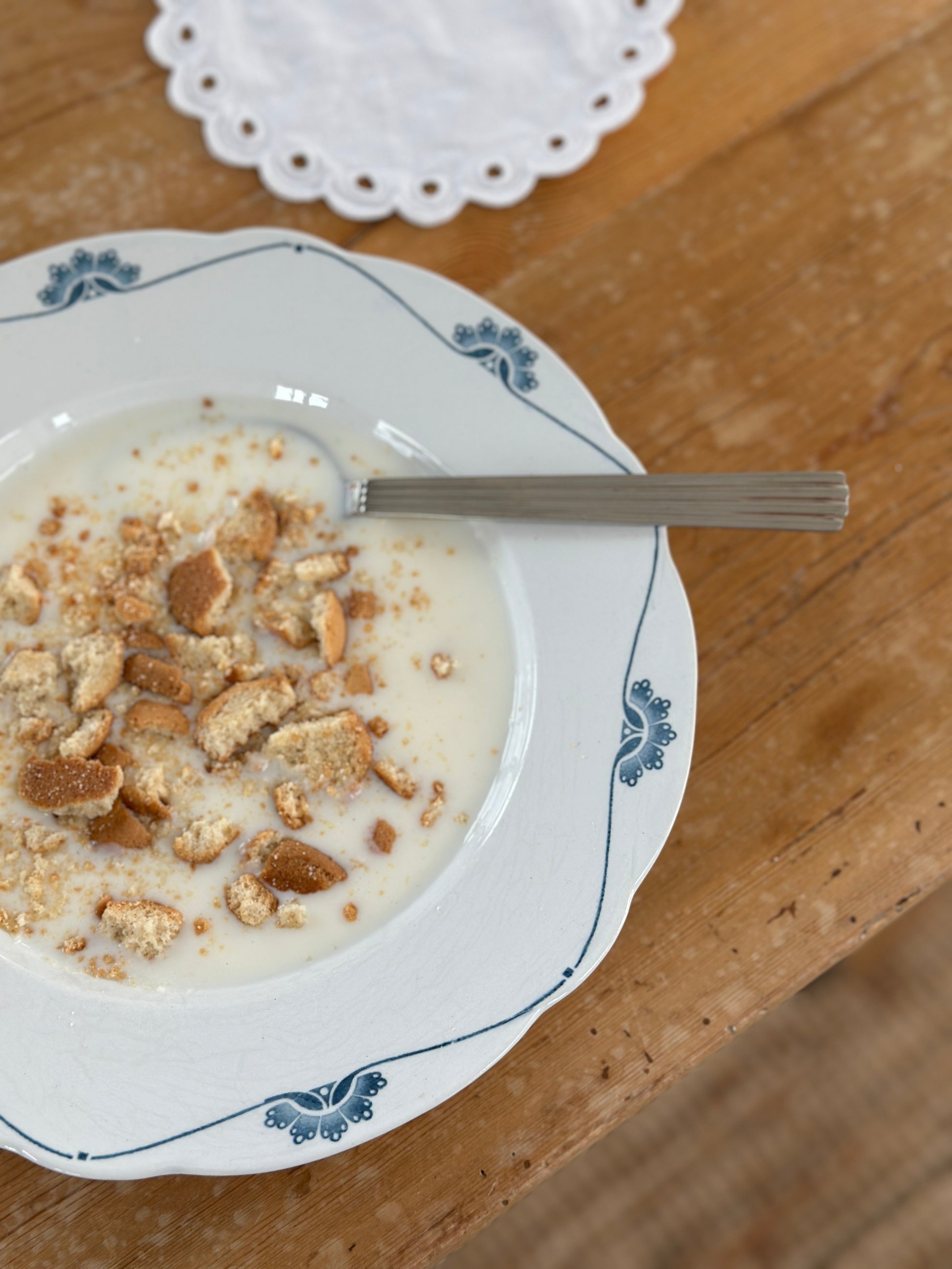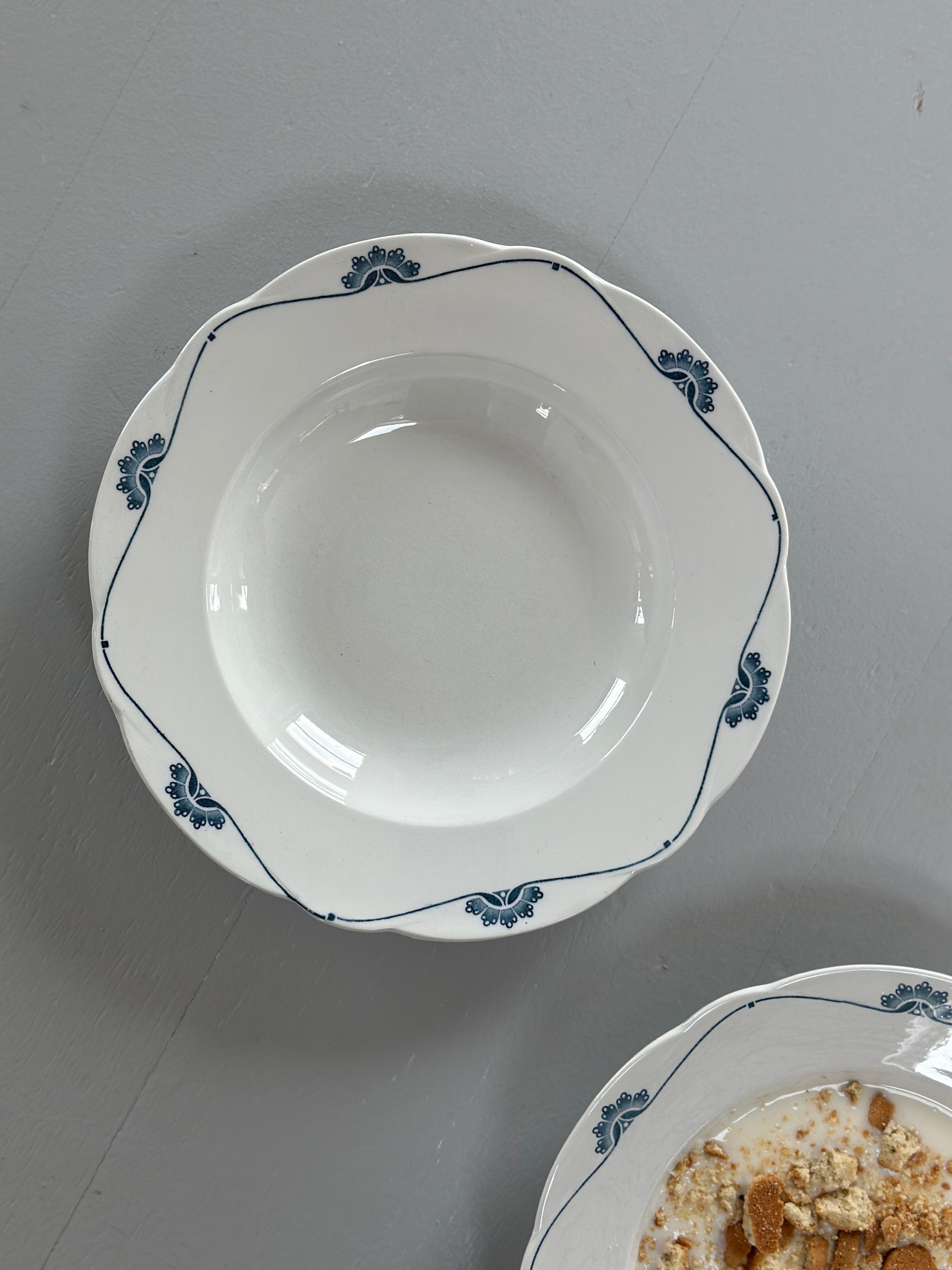 Dybe tallerkner fra Villeroy & Boch med fin form i kanten og blå motiv