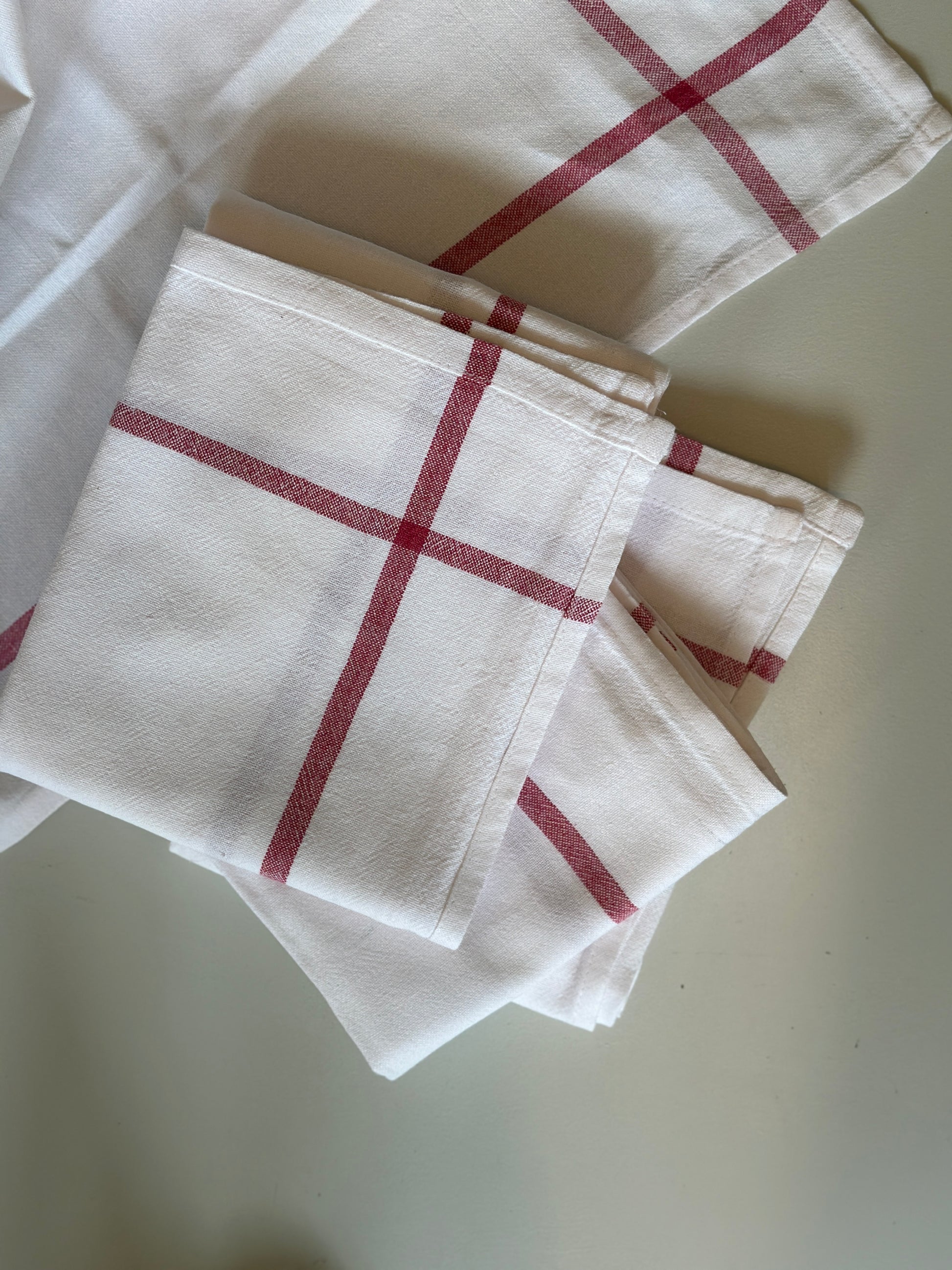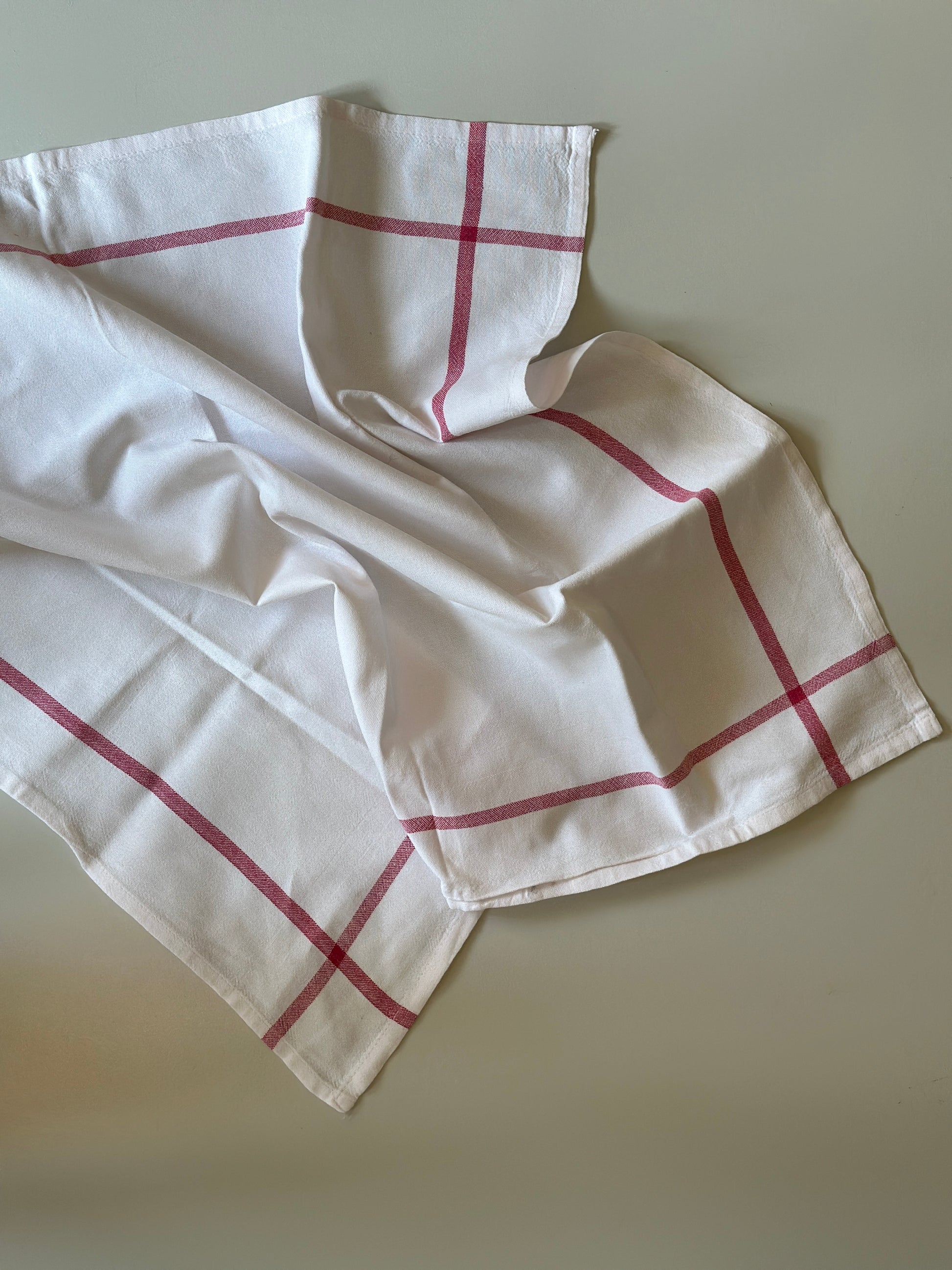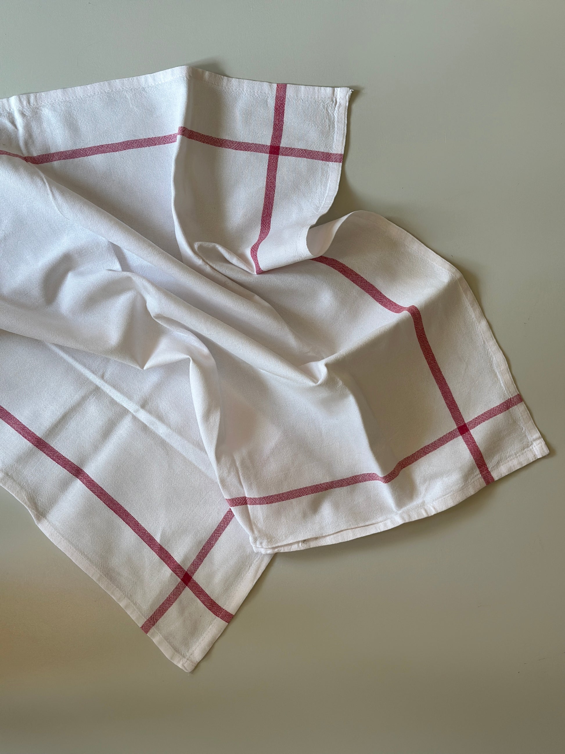 Klassiske vintage viskestykker i hvis og rød.